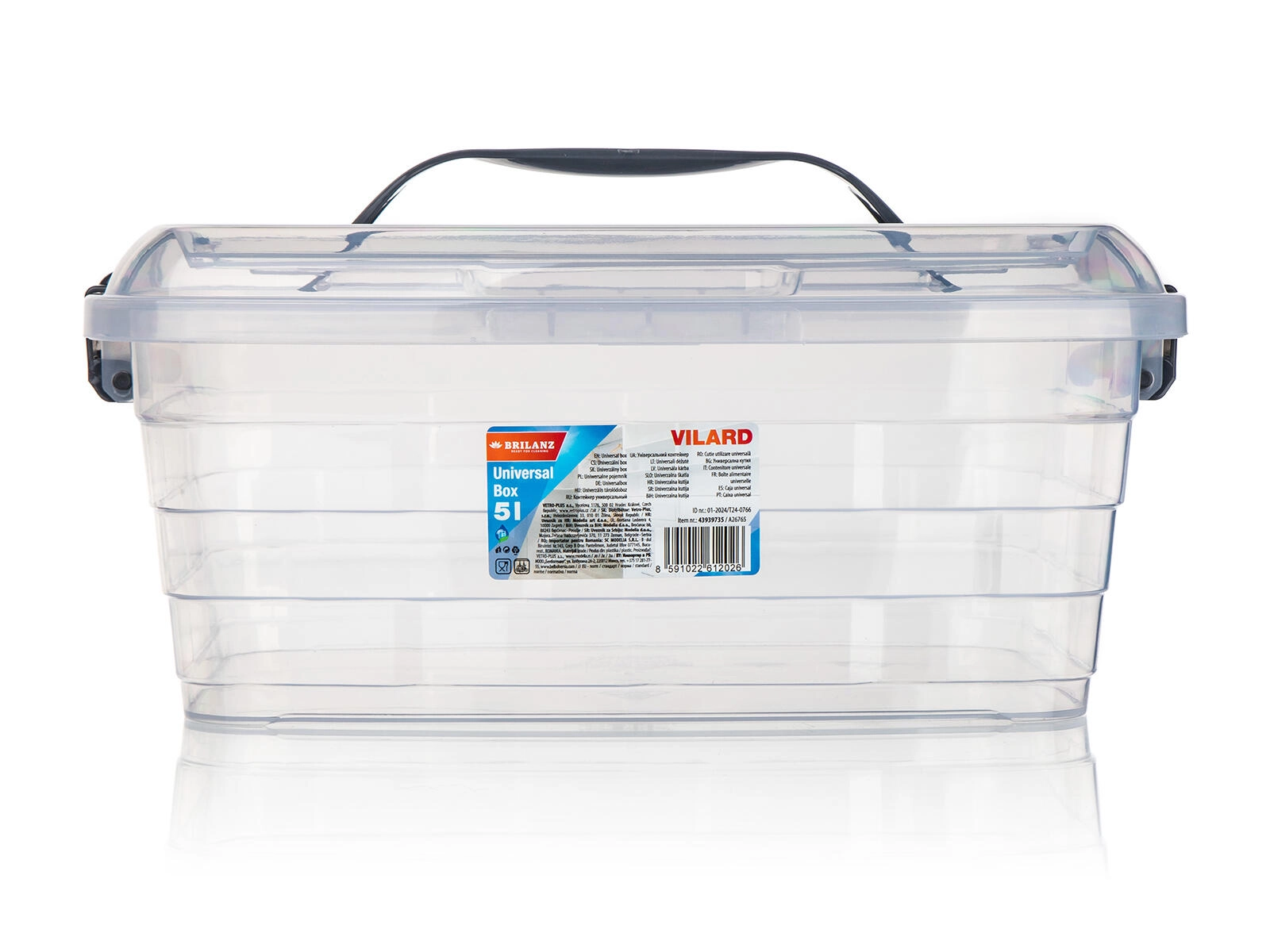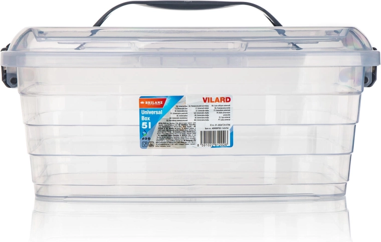 La scatola portaoggetti VILARD 5 l offre una soluzione intelligente e ordinata per l’organizzazione. Il design trasparente consente di orientarsi rapidamente nel contenuto, mentre le clip e il manico in tonalità fumé aggiungono un look elegante e sicurezza nella manipolazione. Grazie alla plastica robusta, la scatola è resistente e adatta all’uso quotidiano.