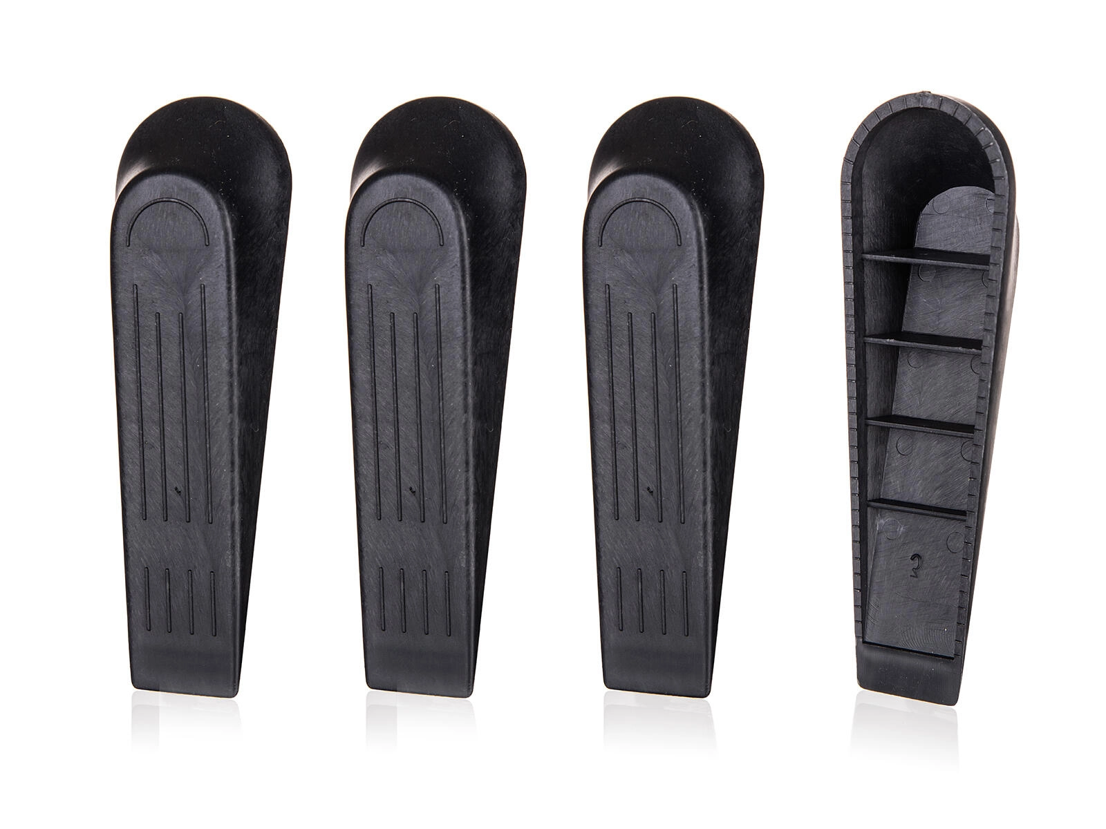 Affidabili cunei ferma porta nel classico colore nero si inseriscono facilmente sotto la maggior parte delle porte interne grazie alla forma rastremata. Le scanalature antiscivolo aumentano l’aderenza e la stabilità, così la porta rimane esattamente dove serve.