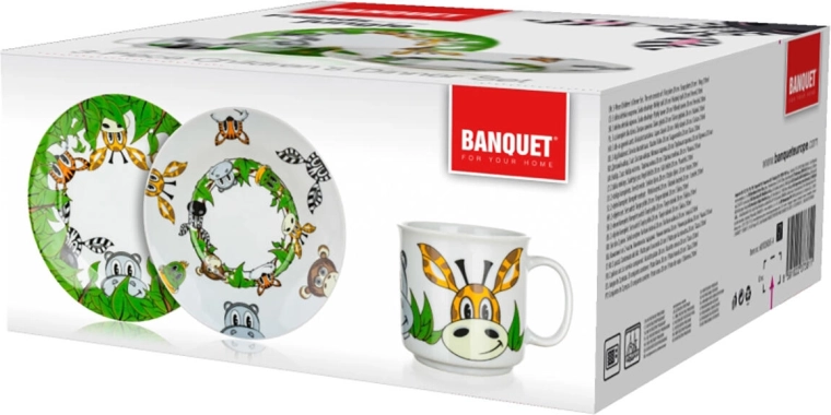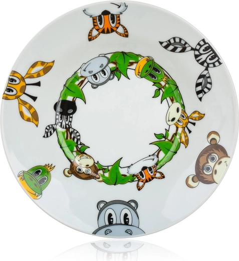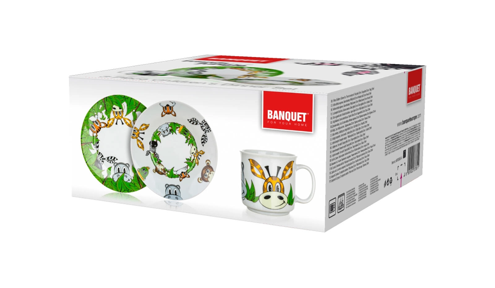 Tutti i pezzi sono realizzati in ceramica resistente, che trattiene bene il calore, non assorbe odori o sapori e si pulisce facilmente. Grazie ai bordi ampi, il bambino ha una presa più sicura e il cibo rimane comodamente al suo posto. Il motivo giocoso con giraffa, tigre e zebra dona a ogni pasto un’atmosfera gioiosa.