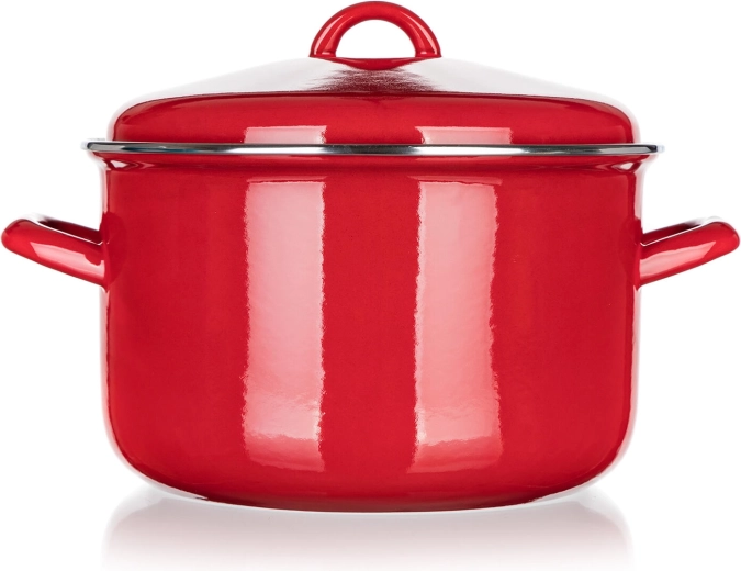 La superficie smaltata è resistente ai graffi e alle macchie, conduce il calore in modo eccellente e lo mantiene a lungo. Le ampie maniglie laterali e il coperchio ben aderente assicurano una manipolazione sicura e una cottura uniforme. Il fondo nero per induzione è ottimizzato per un trasferimento di calore stabile su tutti i piani cottura.