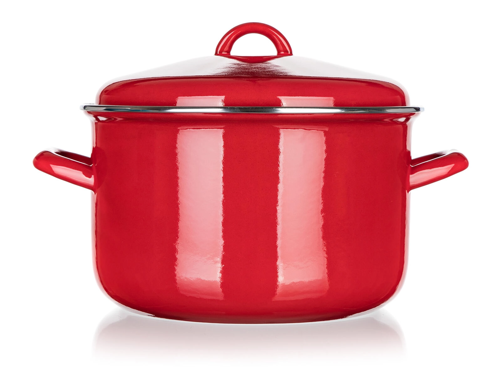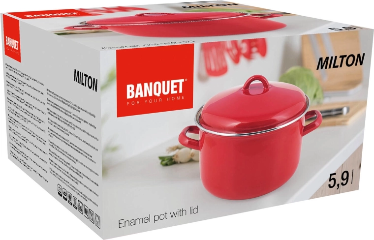 Elegante pentola rossa MILTON con coperchio che combina l’aspetto classico dello smalto con caratteristiche pratiche per la cucina di ogni giorno. Grazie alla capacità di 5,9 l, è facile preparare porzioni più grandi di zuppe, brodi o piatti stufati. L’interno color crema facilita il controllo del grado di cottura e la pulizia.