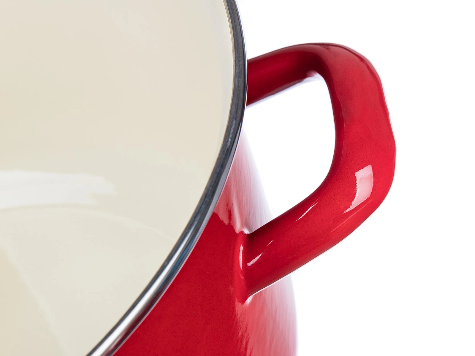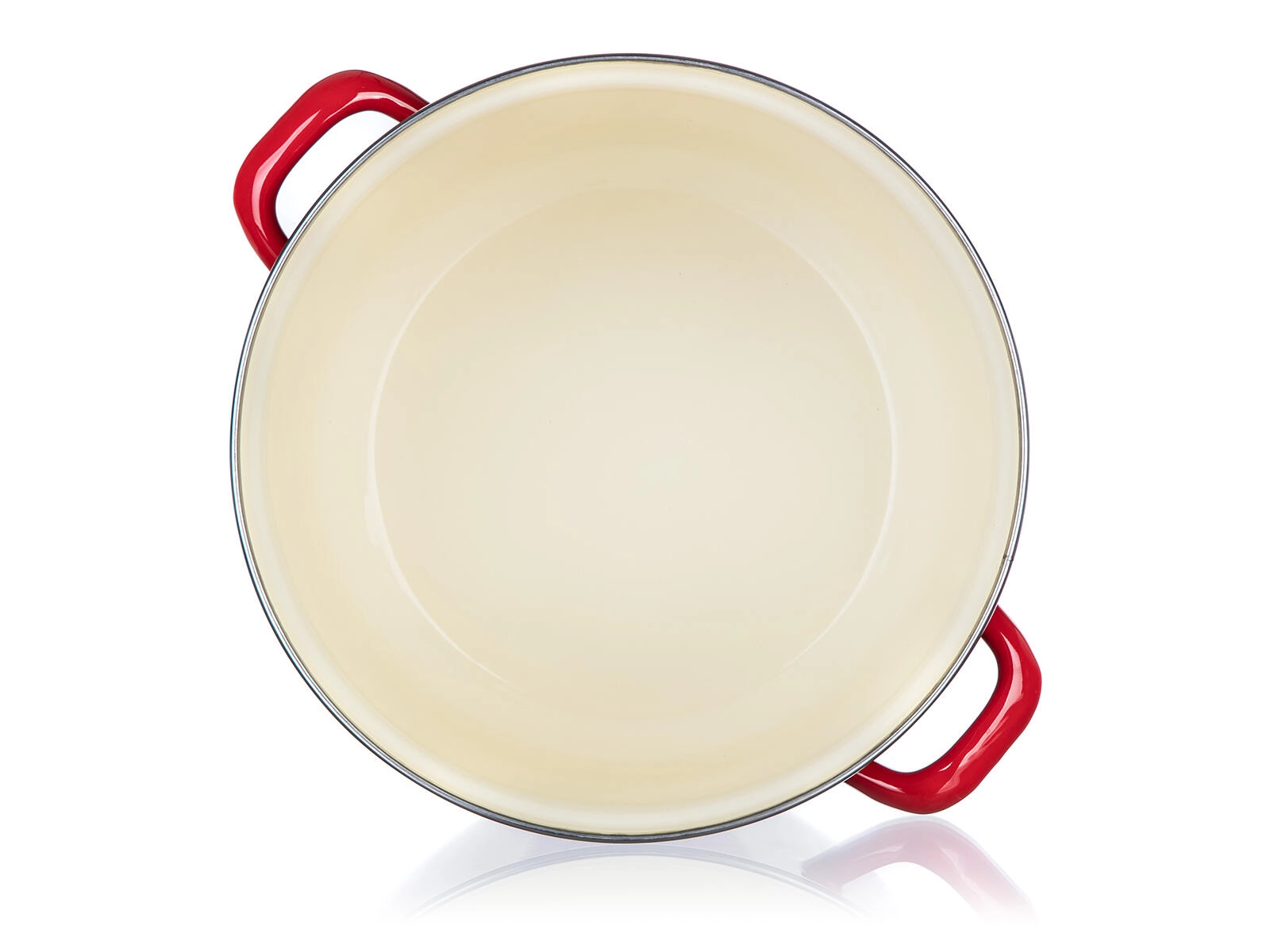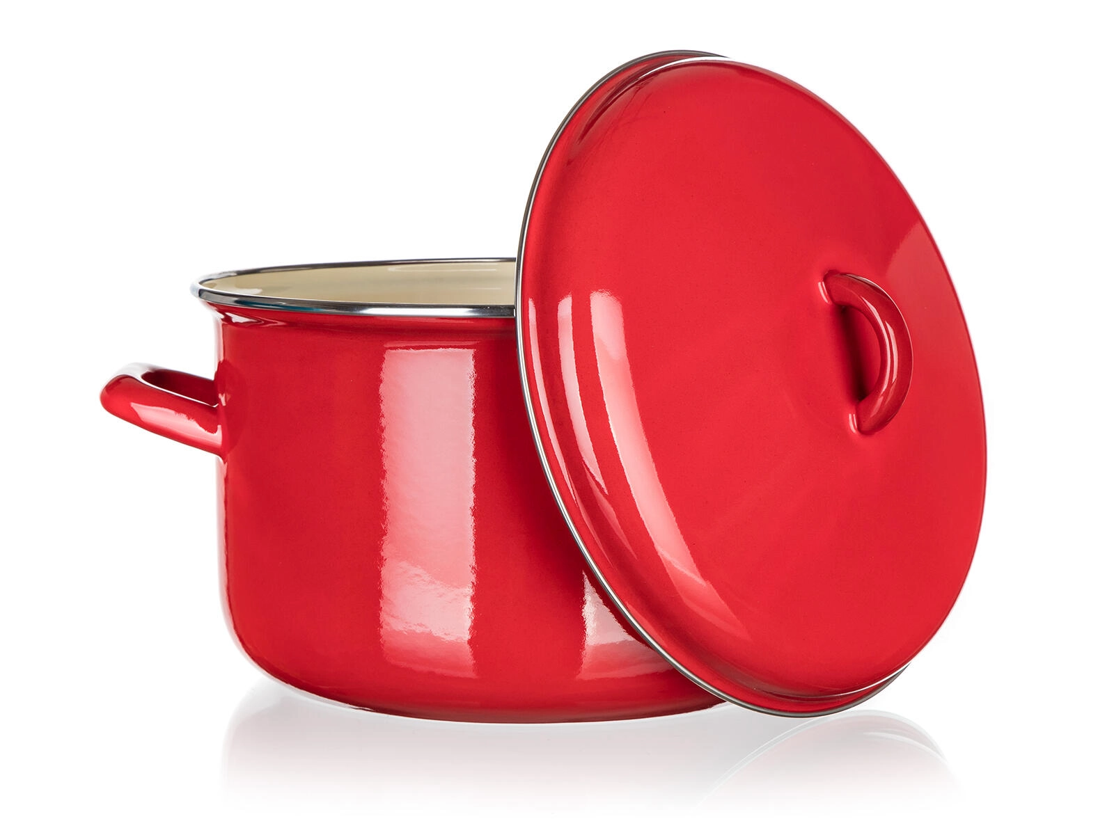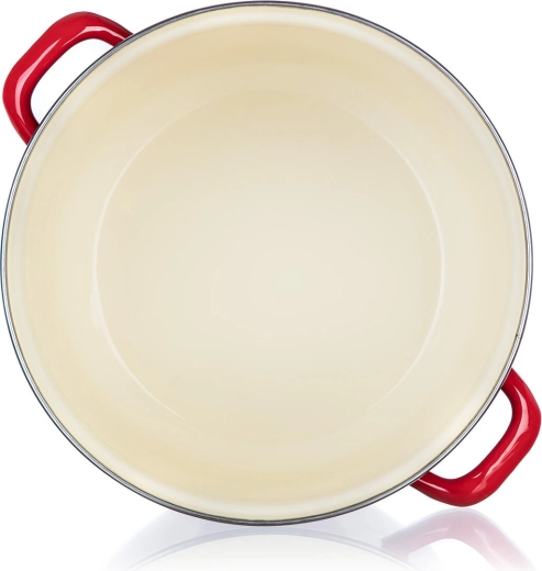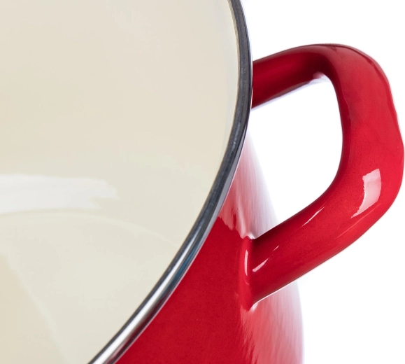 La smaltatura rossa con interno color crema è resistente alle macchie e facile da pulire. Ideale per l’uso quotidiano.