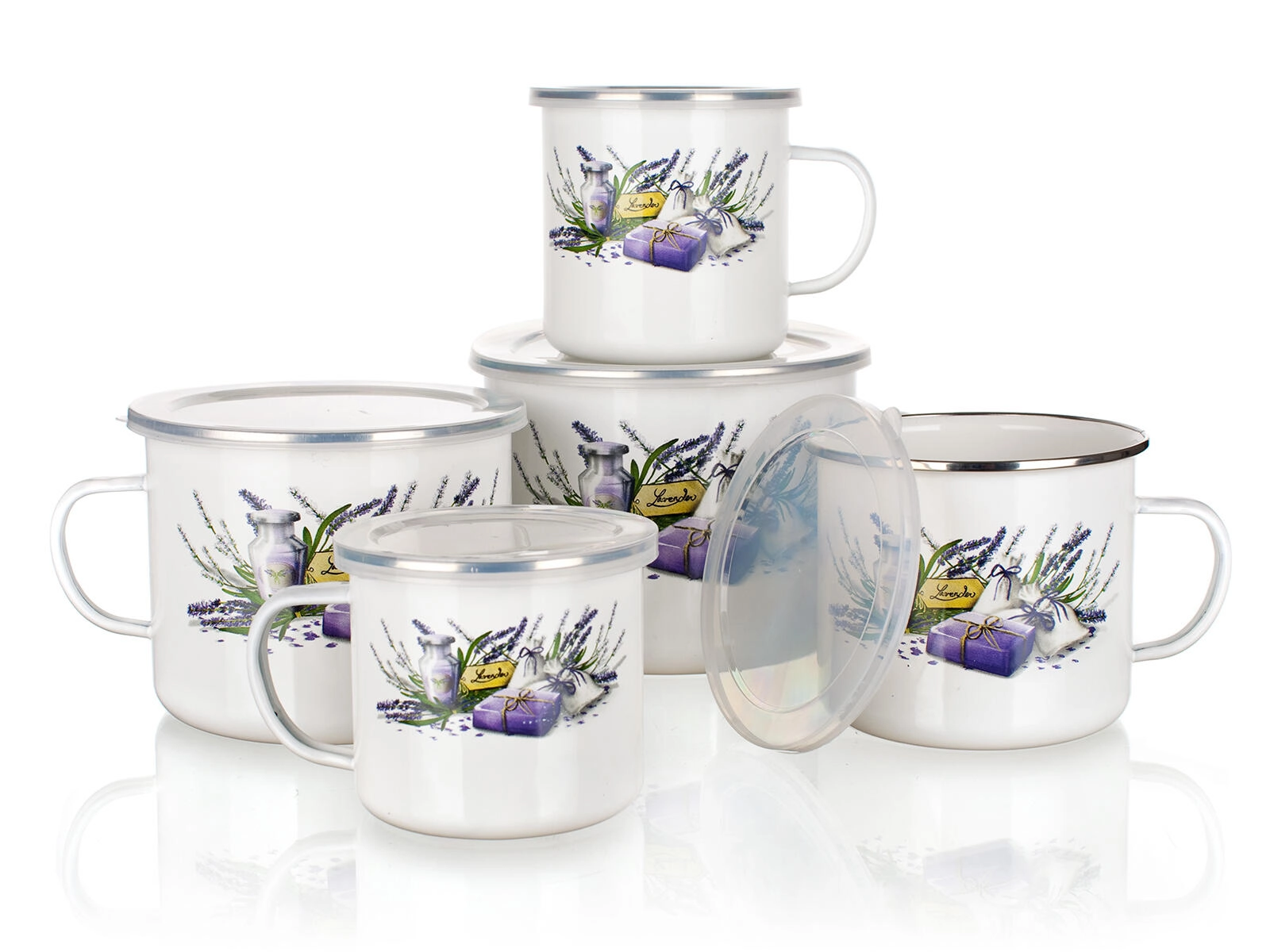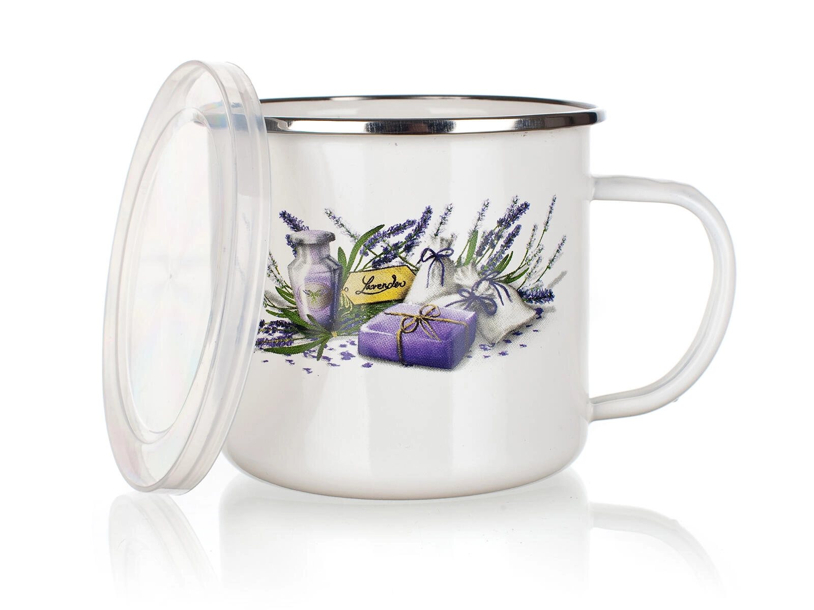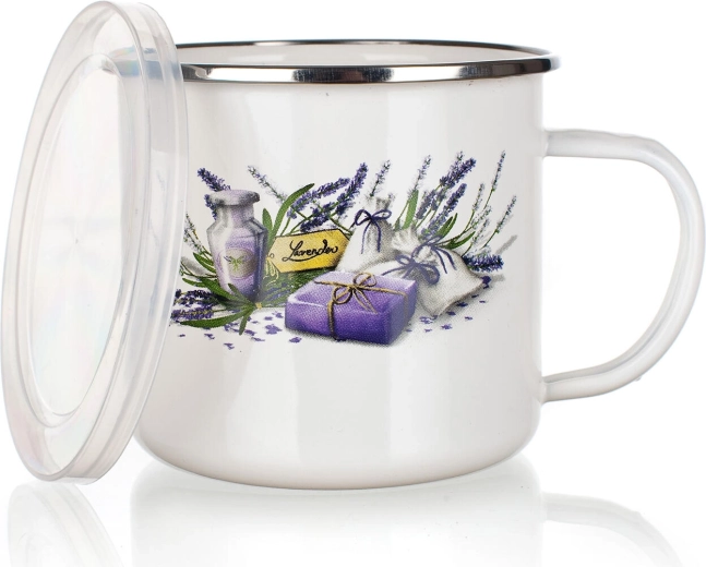 Lo smalto è noto per la sua resistenza ai graffi e la facile manutenzione. La tazza è leggera, stabile e comoda da impugnare. Il coperchio è utile anche per la conservazione a breve termine di bevande o piccoli alimenti, affinché restino freschi più a lungo. La stampa stilosa Lavender dona alla tua tavola un tocco di Provenza.