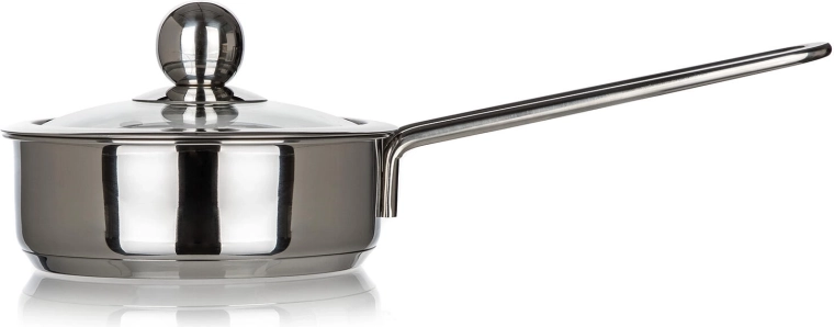 Casseruola compatta in acciaio inox 0,75 l con diametro 14 cm e coperchio in vetro, ideale per riscaldare, cuocere salse o porzioni singole. L’acciaio 201 resistente e l’uso universale su tutti i tipi di piani cottura, inclusa l’induzione garantiscono prestazioni affidabili e una manutenzione facile in lavastoviglie.