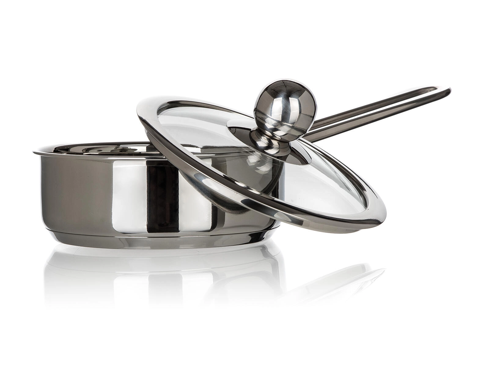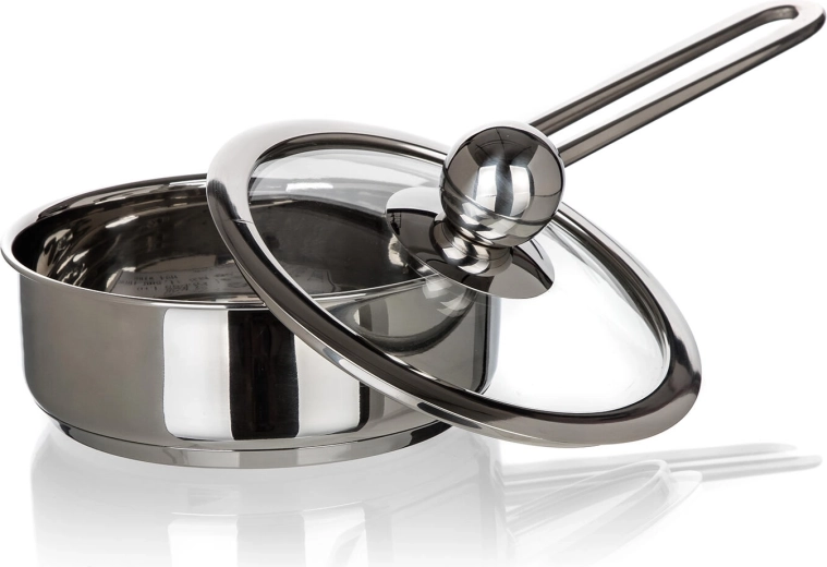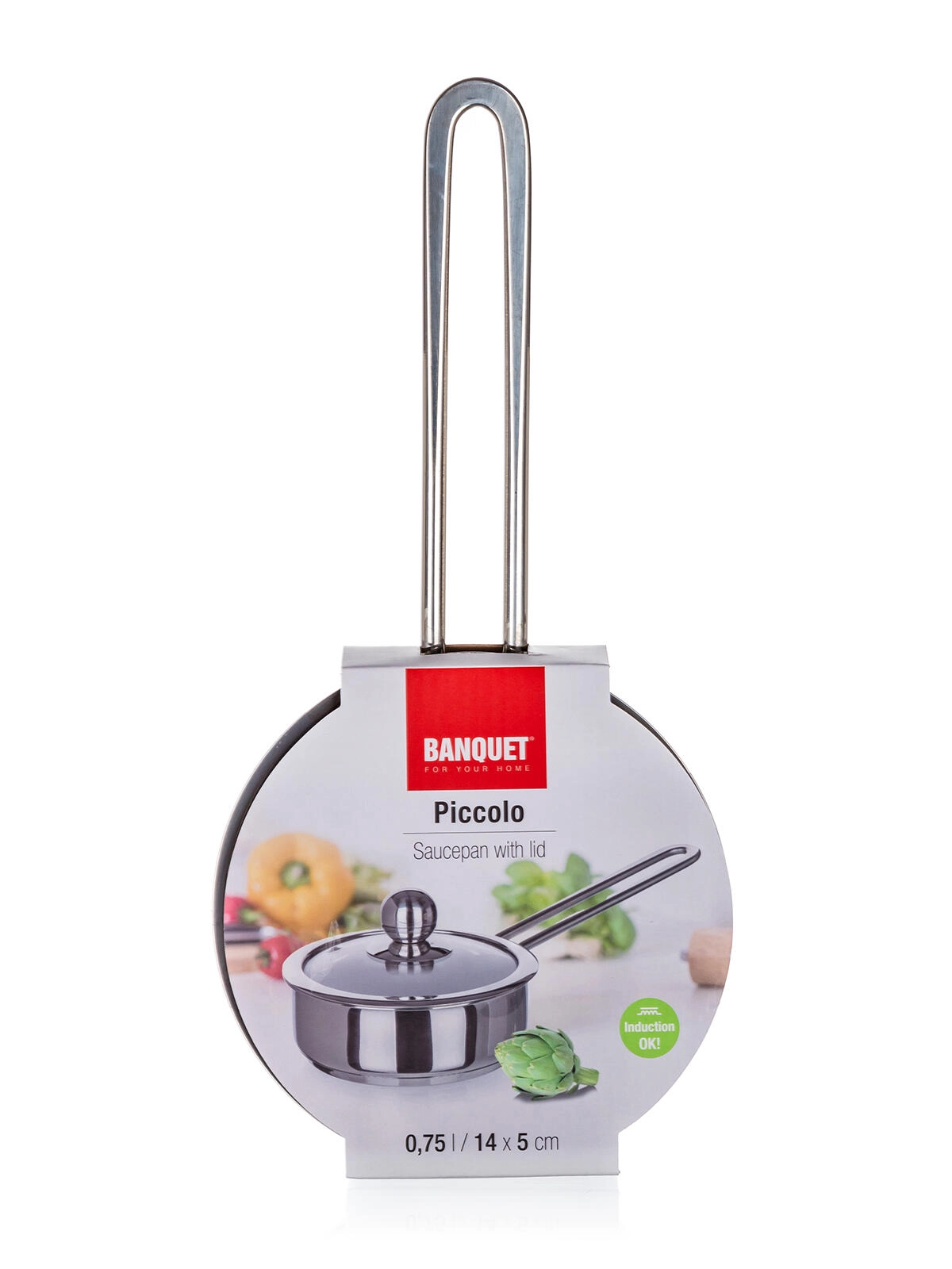 La pratica casseruola PICCOLO in acciaio inox 201 lucidato offre riscaldamento rapido e lunga durata. Grazie alle dimensioni compatte (14 × 5 cm) è perfetta per preparare porzioni più piccole, pasti per bambini, porridge o salse. Il coperchio in vetro consente di controllare la cottura senza dispersioni inutili di calore e vapore.