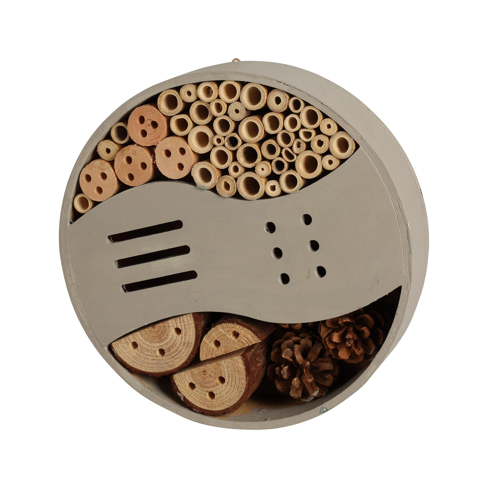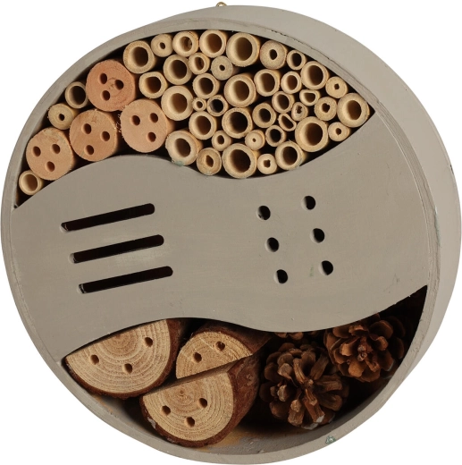Il design nella combinazione di colori grigio e verde si integra facilmente negli spazi esterni. Posizionalo in un luogo soleggiato e riparato dal vento, ad almeno 1–2 metri dal suolo, per offrire agli insetti un ambiente tranquillo durante tutto l’anno.
