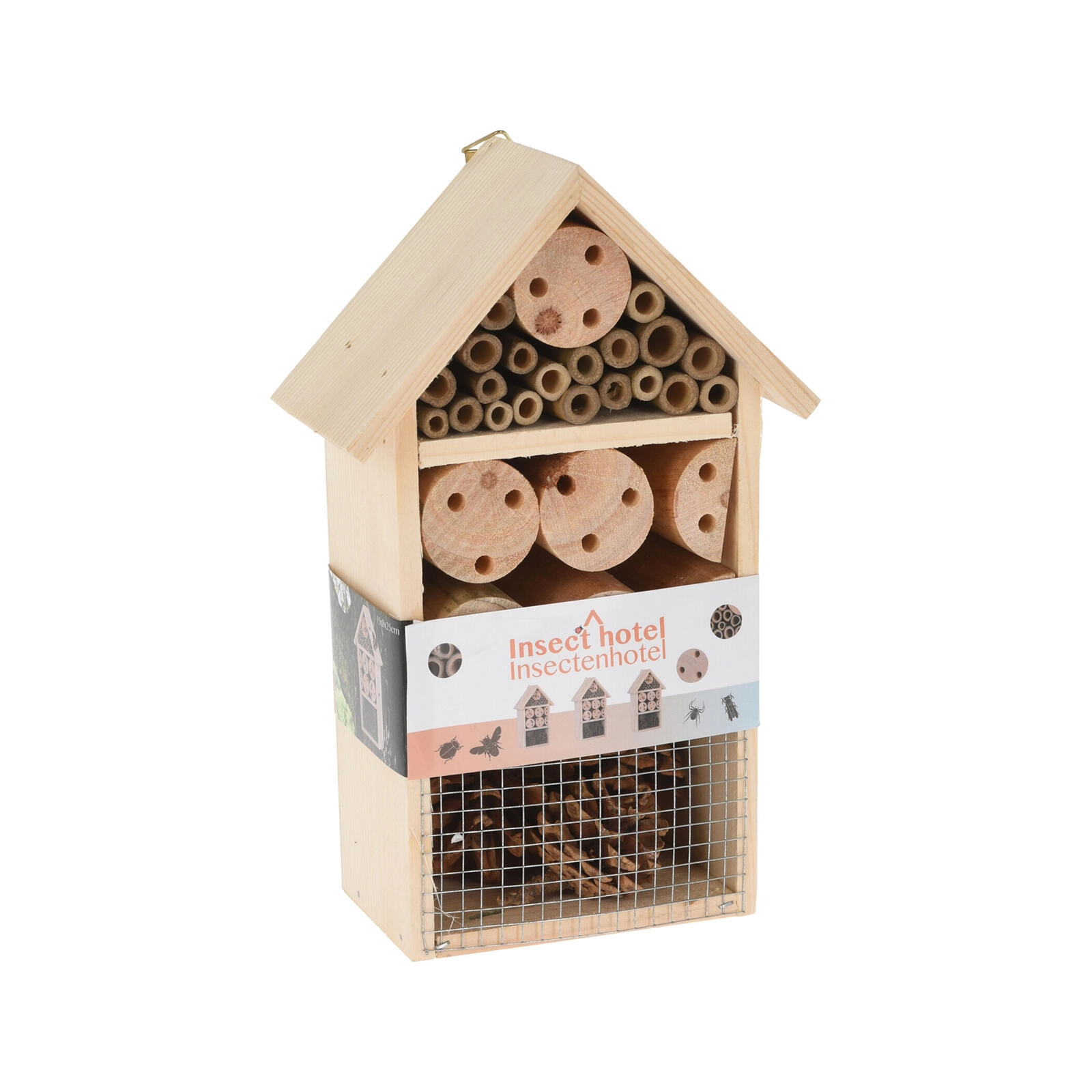 Elegante hotel per insetti in legno che offre un rifugio sicuro per gli insetti utili nel tuo giardino tutto l’anno. Sostieni l’impollinazione e la protezione naturale delle piante grazie a cavità e cellette diversificate. Svernamento naturale, sostegno ecologico alla biodiversità e installazione semplice in un formato compatto 19 × 9 × 25 cm.