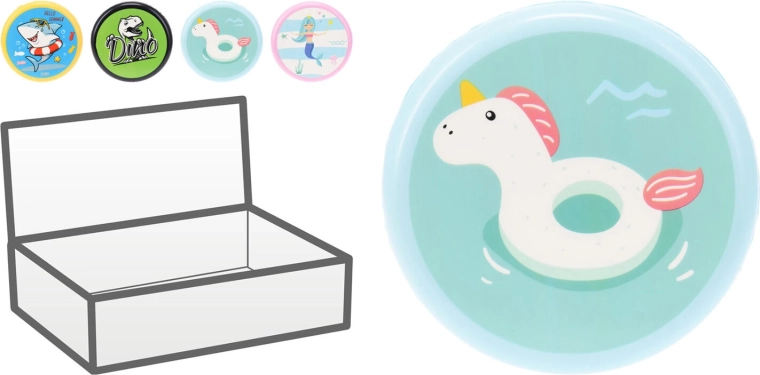 Goditi il divertimento estivo con questo disco volante per l’acqua dal diametro di 20 cm. La struttura leggera e resistente in poliuretano assicura un lancio comodo anche per i bambini. Il mix di decorazioni alla moda (sirena, unicorno, dinosauro, squalo) farà felici piccoli e grandi appassionati di giochi attivi in acqua.