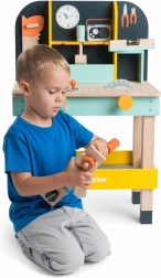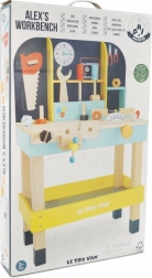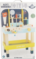 Il banco da lavoro in legno per bambini ALEX di LE TOY VAN offre tutto ciò di cui i piccoli riparatori hanno bisogno per un gioco realistico. Grazie alla struttura robusta in legno certificato FSC e alle vernici atossiche, è sicuro, durevole e rispettoso dell’ambiente. Dispone di segatrice circolare, righello e morsa integrati, mensola superiore con ganci e vano portaoggetti inferiore per ulteriore attrezzatura.
