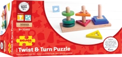 Questo intelligente giocattolo in legno motiva i bambini alla scoperta. I pezzi si infilano su tre pioli diversi e alcuni richiedono la rotazione o l’orientamento corretto. I bambini allenano così in modo naturale destrezza delle dita, pazienza e visione spaziale.