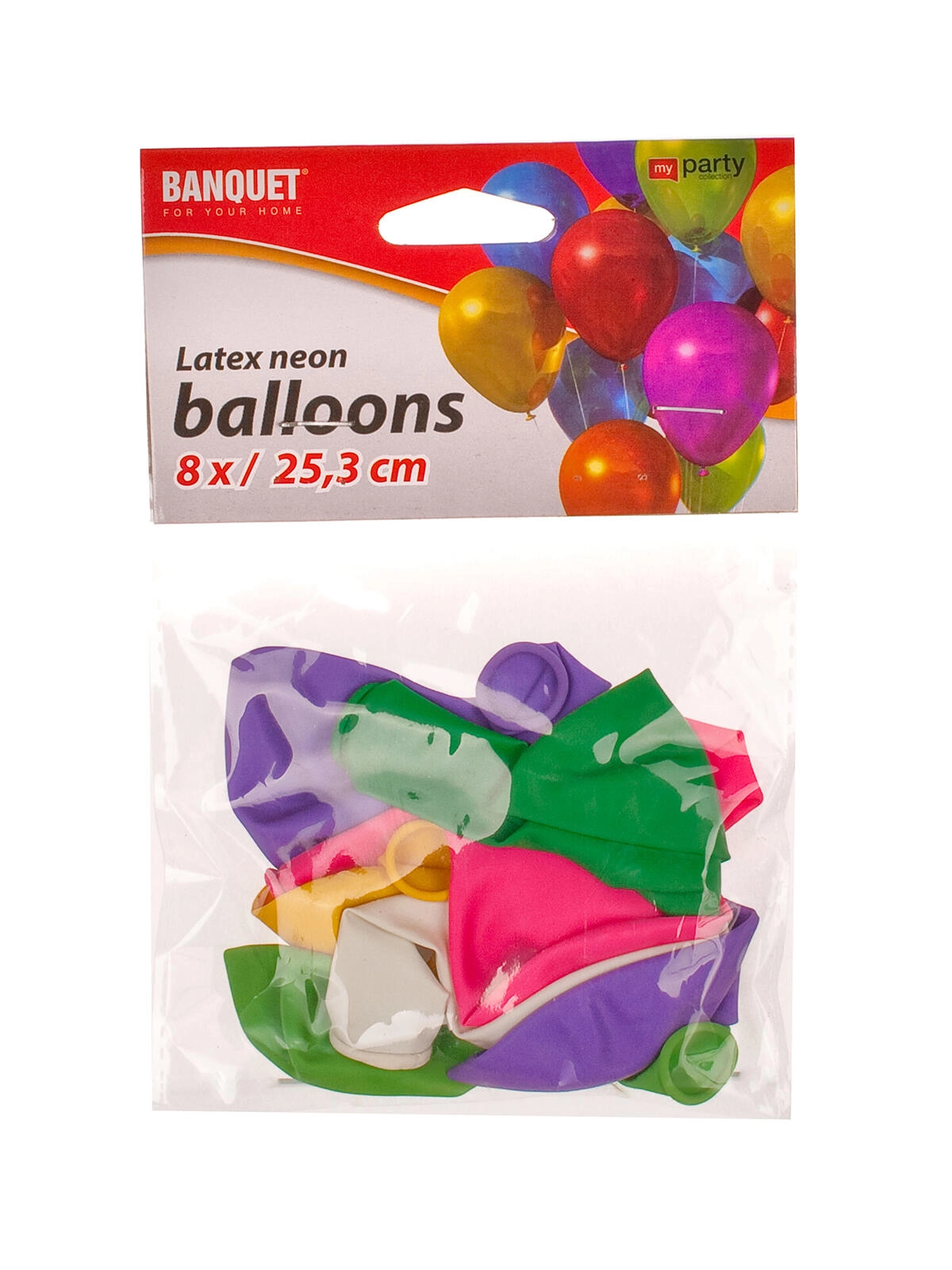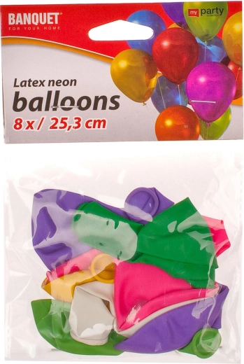 Ravviva ogni festa con questi palloncini in lattice neon MY PARTY dal diametro di circa 25,3 cm. La confezione contiene 6 pezzi leggeri e atossici in vivaci colori neon, ideali per compleanni, party ed eventi a tema. Si possono gonfiare facilmente a bocca o con una pompetta.