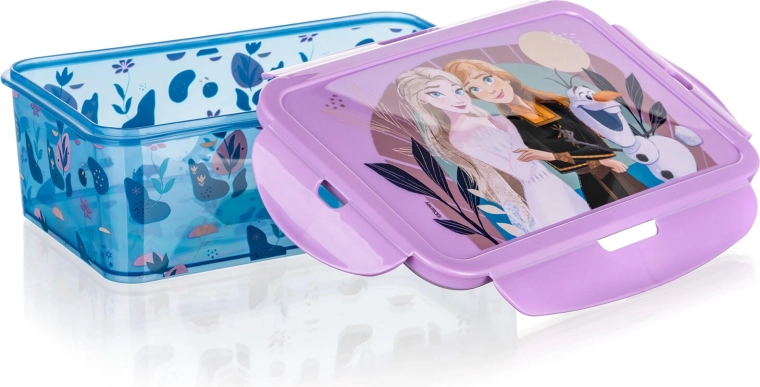 Questo porta pranzo dal design FROZEN, elegante e resistente, farà felice ogni piccolo fan di ELSA, ANNA e OLAF. Grazie alla pratica clip, il coperchio si chiude saldamente e gli alimenti restano al sicuro all’interno. La guarnizione in silicone aiuta a mantenere lo spuntino più fresco e profumato.