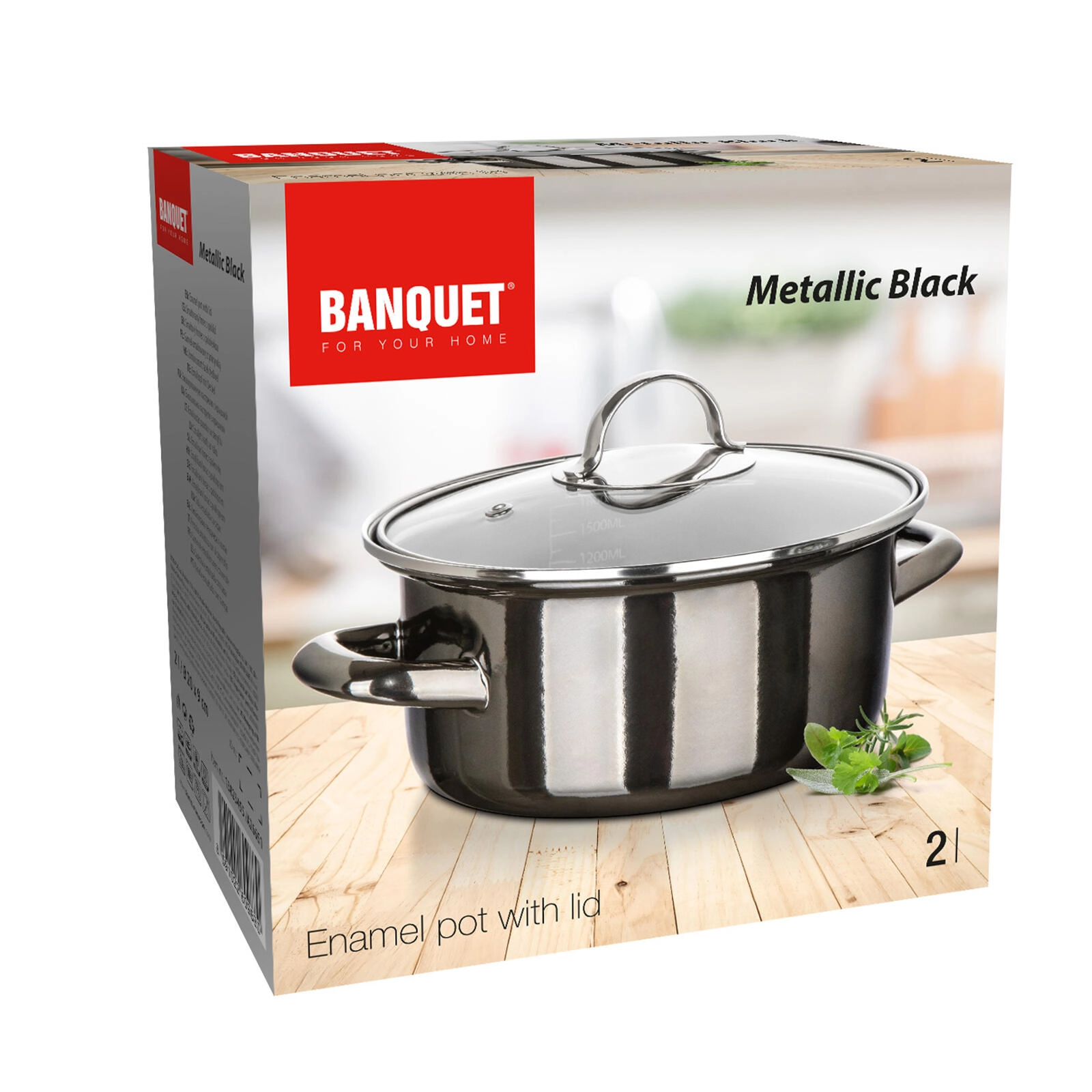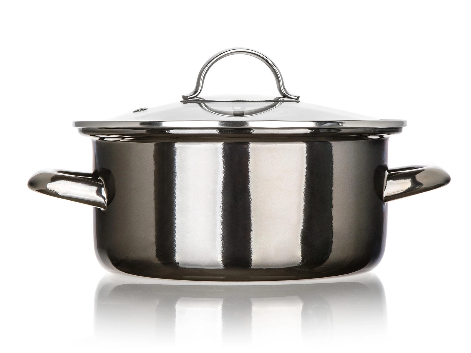 Elegante pentola smaltata nella finitura Metallic Black con capacità di 2 litri e diametro di 20 cm, ideale per la cucina quotidiana. Grazie al coperchio in vetro puoi controllare facilmente la cottura, mentre il rivestimento smaltato resistente garantisce una lunga durata e la compatibilità con tutti i tipi di piani cottura, inclusa l'induzione, offre la massima versatilità.