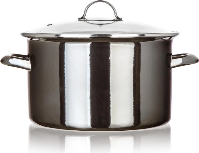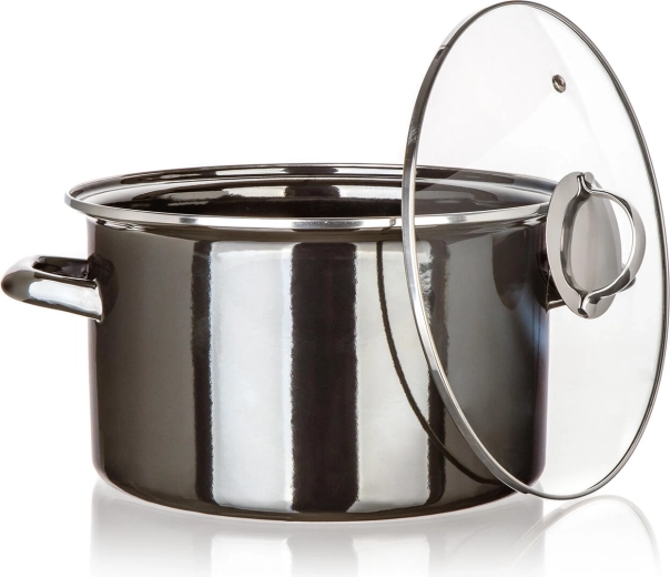 Scopri una pentola smaltata affidabile che unisce un look classico a funzionalità moderne. Il nero metallizzato dona stile alla tua cucina, mentre il coperchio in vetro permette di controllare la cottura senza doverlo sollevare inutilmente. Con un volume di 6 l prepari comodamente zuppe ricche, brodi e porzioni familiari di piatti stufati.