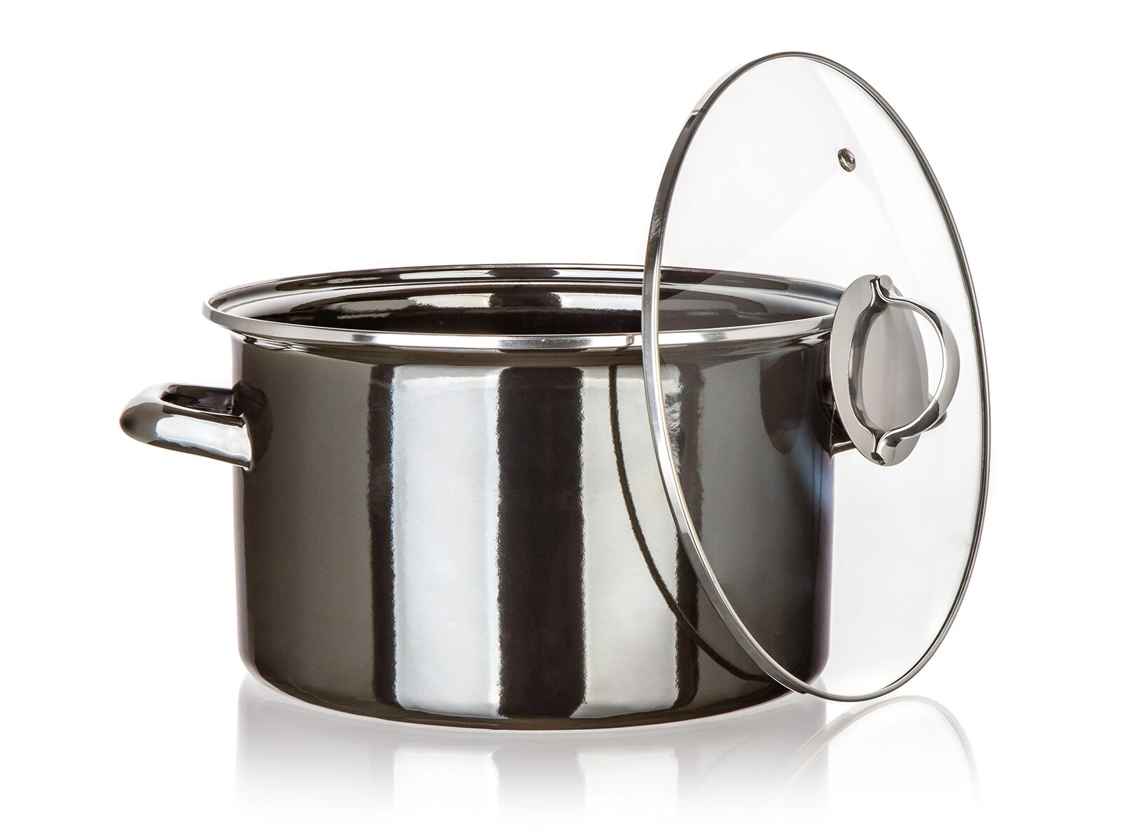 - Pentola smaltata con coperchio in vetro