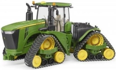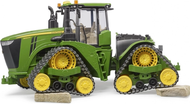 Il trattore cingolato John Deere 9620RX Bruder è realizzato in scala 1:16 ed è una copia perfetta della macchina reale. Dispone di cofano motore apribile, porte della cabina apribili e volante regolabile. La cabina è adattata per le figure Bruder BWORLD.