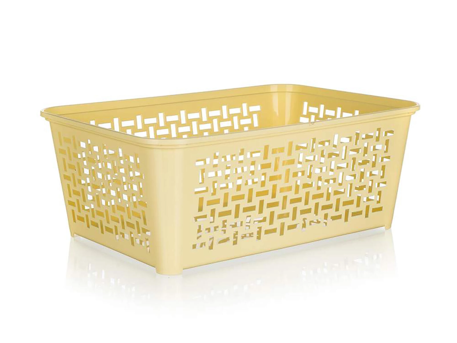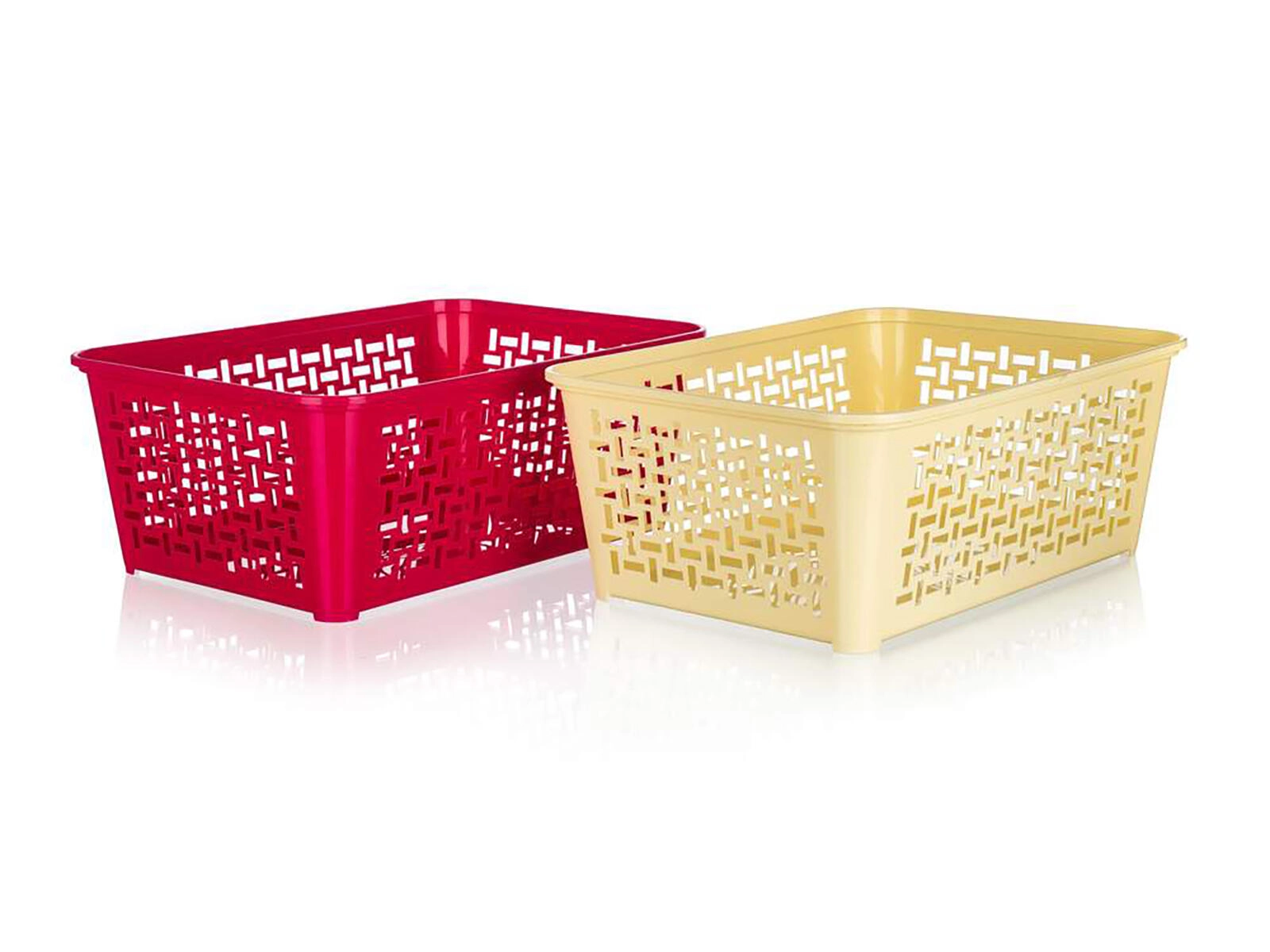 Pratico cestino in plastica con dimensioni 35,8 × 25,6 × 14 cm, ideale per un’organizzazione ordinata in casa e in ufficio. Grazie alla possibilità di inserire trasversalmente un cestino più piccolo 24,7 × 14,7 cm si crea un ripiano intermedio per una migliore organizzazione dello spazio. Cestino leggero, impilabile e resistente, in assortimento di colori, facilita la suddivisione di giocattoli, alimenti, piccoli oggetti e materiali da ufficio.