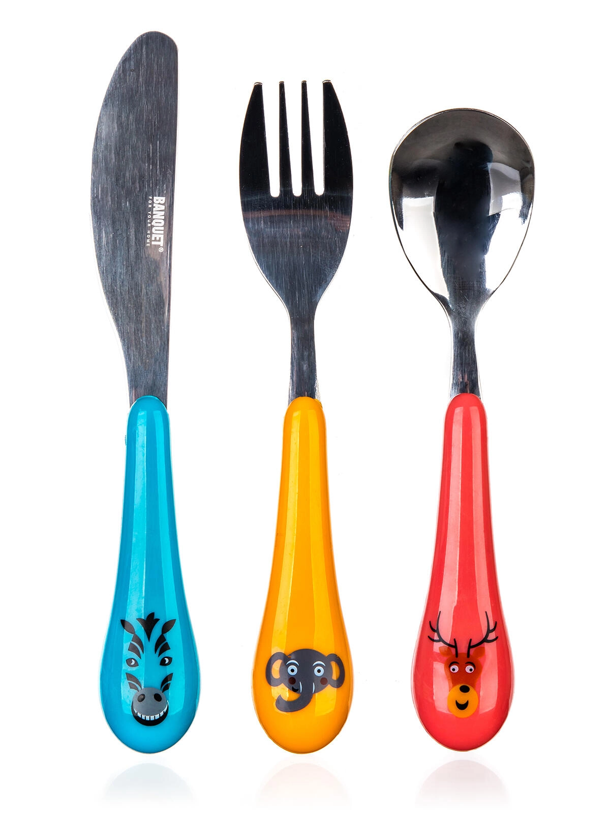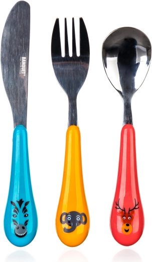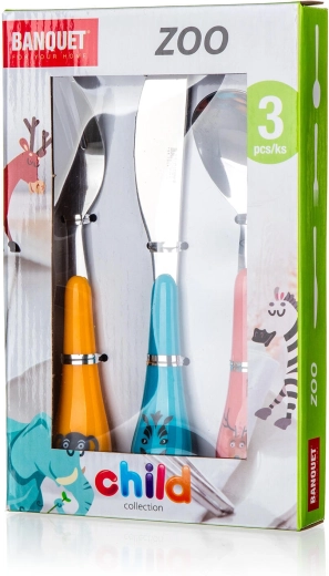 Questo set da 3 pezzi contiene tutto ciò di cui i bambini hanno bisogno per mangiare comodamente: cucchiaio, forchetta e coltello. Grazie ai motivi giocosi dello ZOO, ogni pasto diventa un divertimento e i bambini acquisiscono più rapidamente le giuste abitudini.