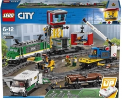 Il set include un vagone per il legname, un vagone con gru girevole ed estensibile e un vagone con due container dotati di ganci sul tetto. La confezione è completata da torre di controllo con segnalazione, furgone blindato, carrello elevatore, tracciato ovale e numerosi accessori (lingotti d’oro, banconote, pallet, ecc.).