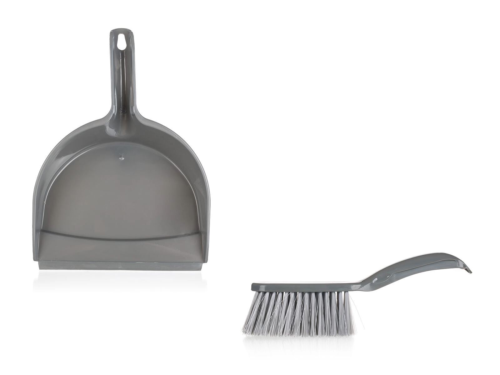 Pratico set per una pulizia rapida: spazzola e paletta con bordo in gomma per raccogliere lo sporco in modo pulito senza polvere superflua. Set leggero in plastica di colore argento, ideale per l’uso quotidiano su pavimenti, in cucina e in ufficio.