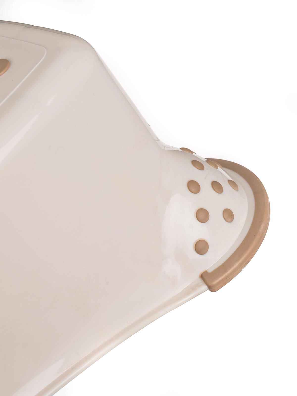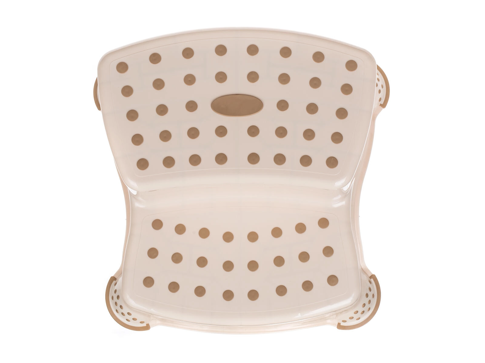 Le superfici antiscivolo sui gradini e la base stabile assicurano un passo sicuro anche su pavimenti lisci. Le dimensioni compatte fanno risparmiare spazio e la finitura color crema si abbina a cucina, bagno e cameretta.
