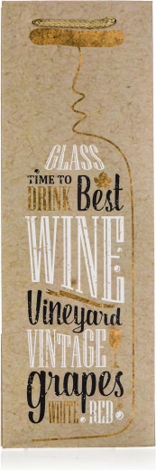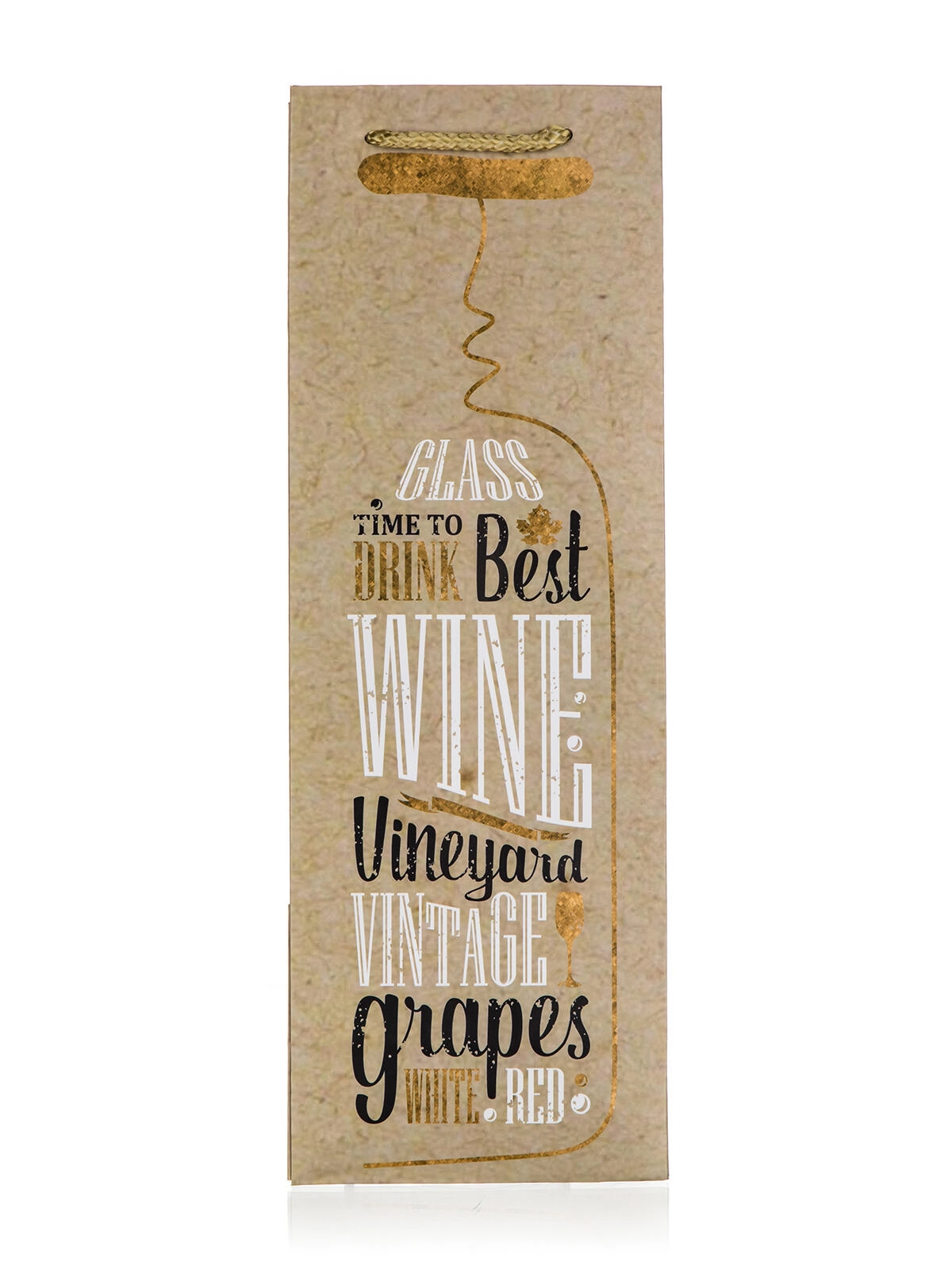 Elegante busta regalo per bottiglia con decoro TIME TO DRINK, perfetta per valorizzare ogni consegna di vino o distillato. Realizzata in carta di alta qualità e dotata di robusto manico in tessuto per un trasporto comodo e sicuro. Ideale per feste, matrimoni e regali per gli amanti del buon bere.