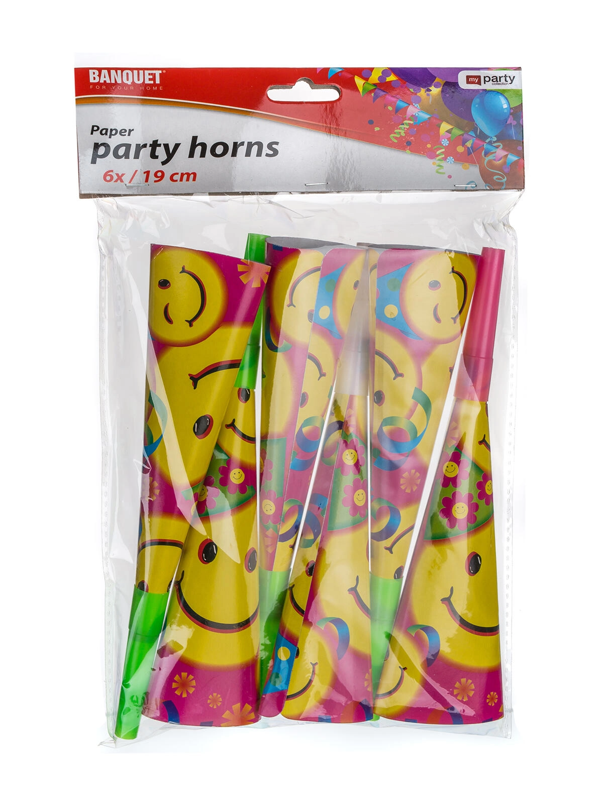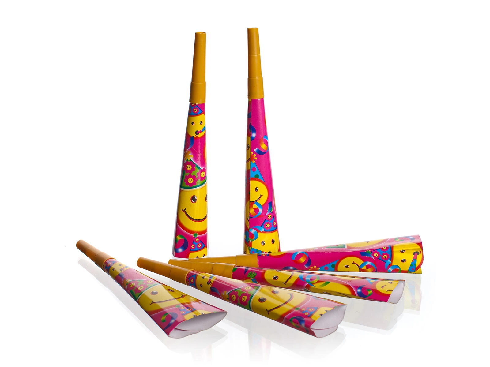 Dai il via a ogni festa con le allegre trombette di carta MY PARTY da 19 cm. Nella confezione trovi 6 pezzi con stampe colorate e boccaglio in plastica per soffiare con facilità. Ideali per compleanni, onomastici, Capodanno e carnevale.