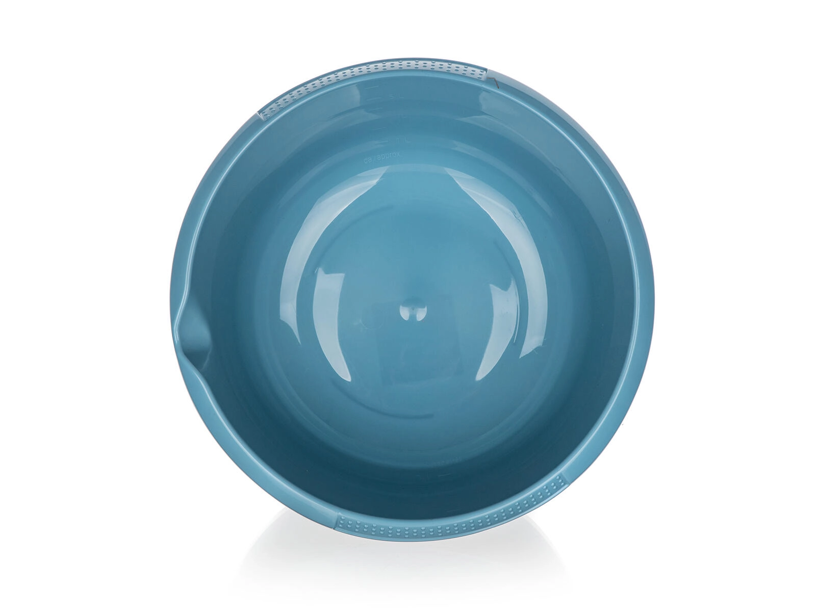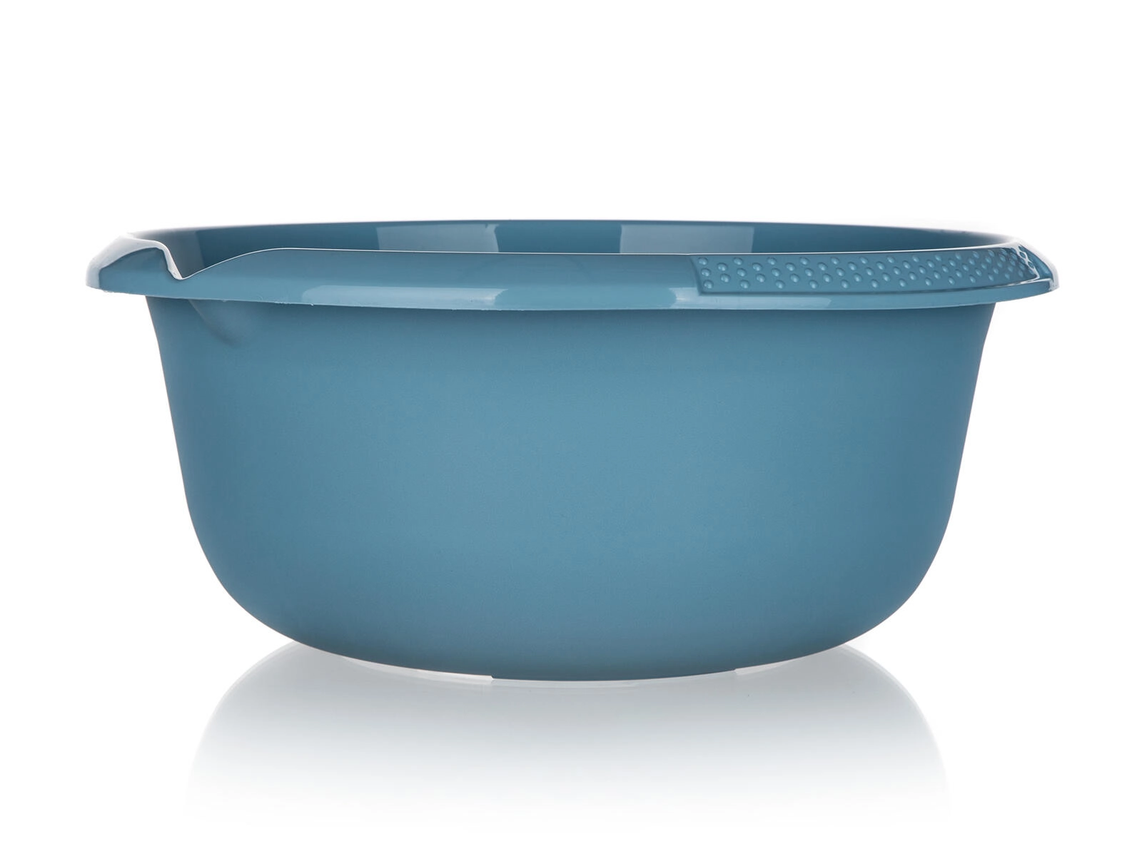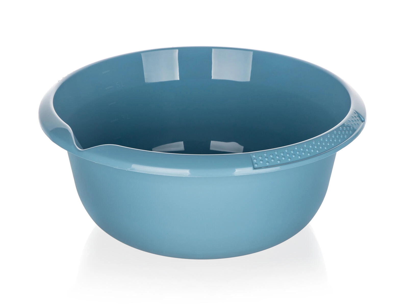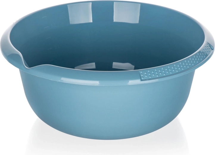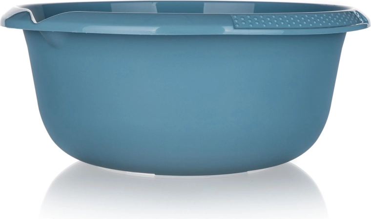 Affidabile bacinella blu in plastica di qualità che semplifica le pulizie quotidiane e la cura della casa. Grazie al pratico beccuccio travasi comodamente acqua o soluzioni senza fuoriuscite indesiderate e il largo bordo con texture assicura una presa salda anche a pieno carico.