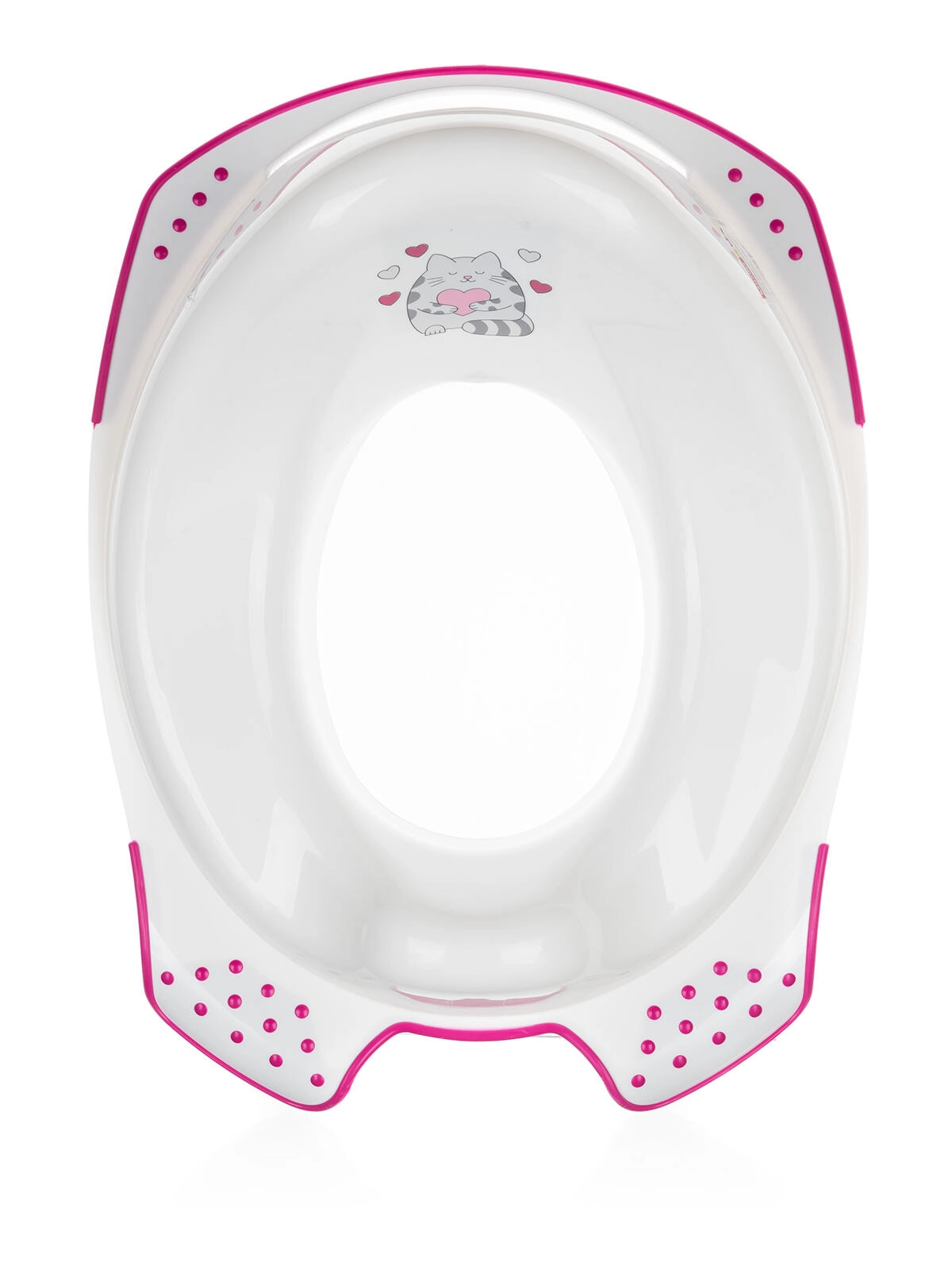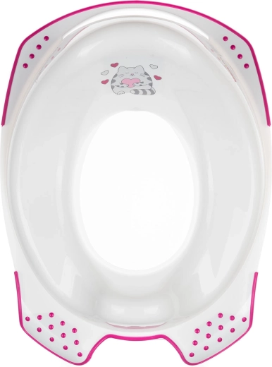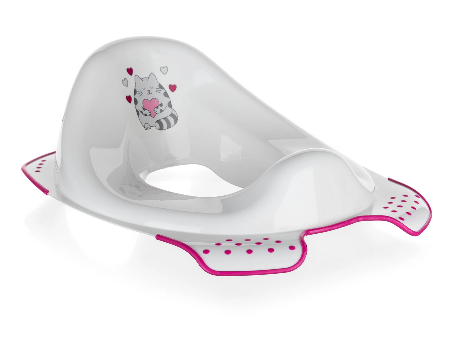 Agevola il passaggio dal vasino al WC con il sedile per bambini CAT. Offre seduta sicura, elementi antiscivolo, forma ergonomica e facile pulizia. Si adatta alla maggior parte dei WC standard, ha un paraschizzi rialzato ed è senza BPA per la massima sicurezza.