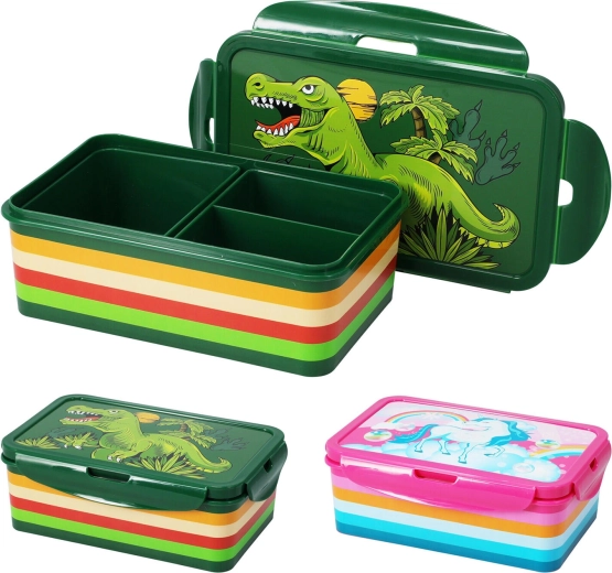 Pratico porta pranzo divisorio con dimensioni 21 × 14 cm e affidabile chiusura a scatto per mantenere il cibo fresco e separato. Grazie alla guarnizione in silicone il contenuto rimane ben sigillato, mentre le due scomparti permettono di organizzare comodamente lo spuntino. Ideale per la scuola, il lavoro e le gite, in mix di 2 decorazioni e colori verde o rosa.