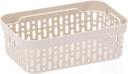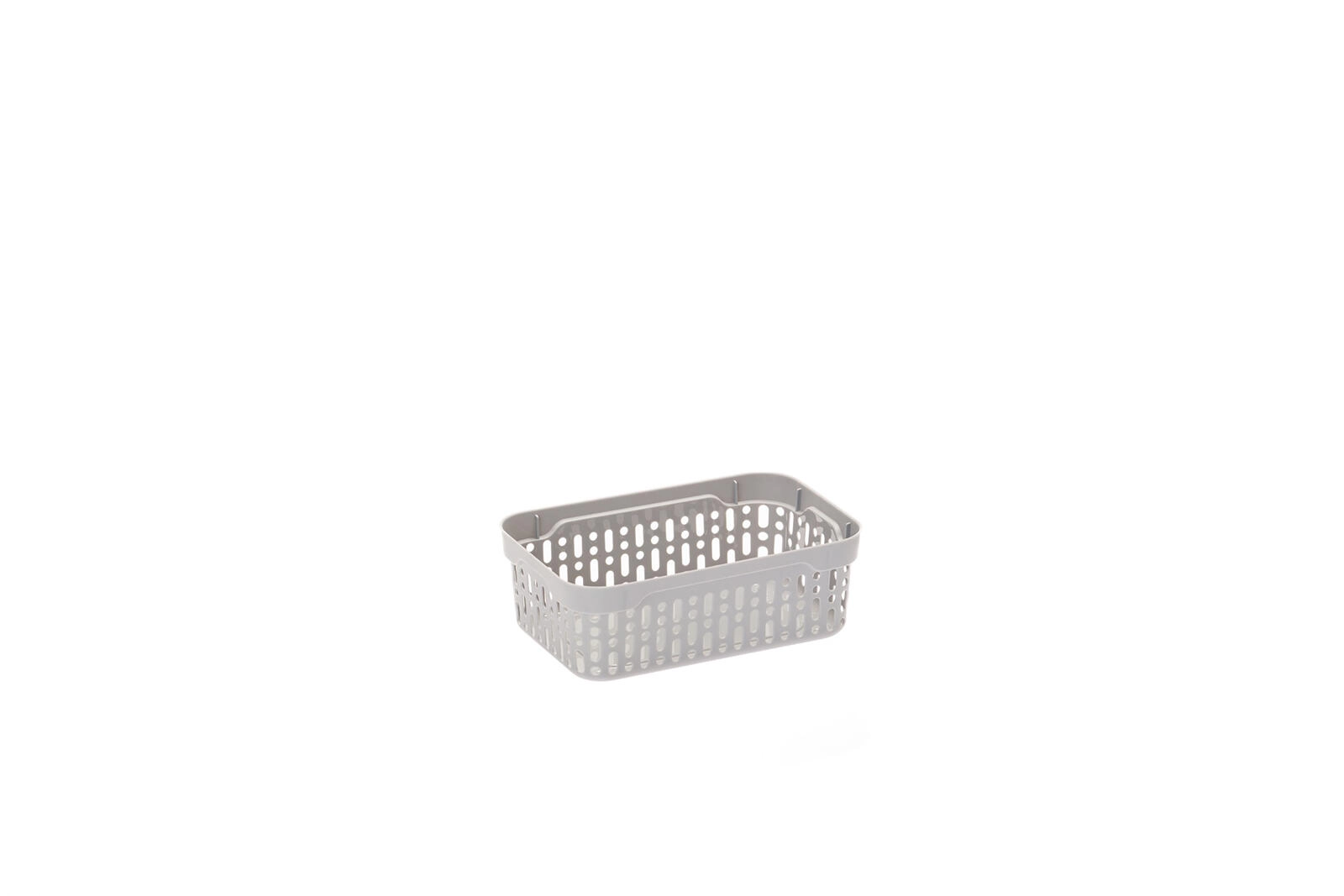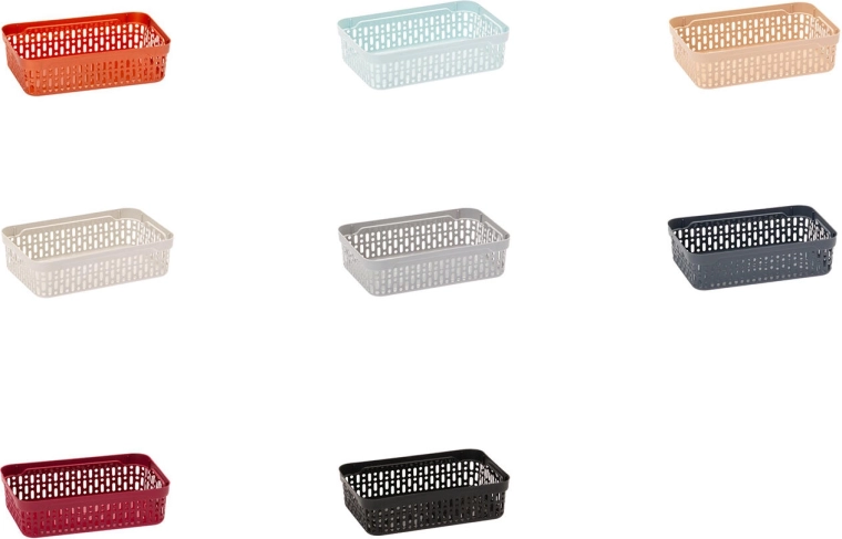 Il pratico cestino in plastica MORSETTA nelle dimensioni 17,7 × 11,7 × 6 cm è ideale per riporre in modo ordinato piccoli oggetti in bagno, cucina, ufficio e cameretta. Grazie ai lati perforati garantisce una buona circolazione dell’aria e una rapida verifica visiva del contenuto. È facile da pulire, leggero e adatto a scaffali, cassetti e scrivanie.