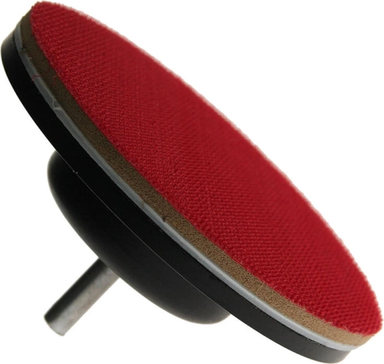 Pratico platò per dischi abrasivi da 125 mm con fissaggio a velcro che facilita e accelera la sostituzione dell’abrasivo. Grazie alla piastra di supporto flessibile si adatta facilmente a curve e spigoli, aiutando a ottenere una levigatura liscia e uniforme.