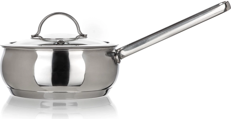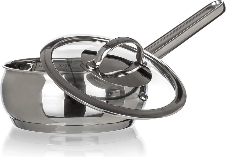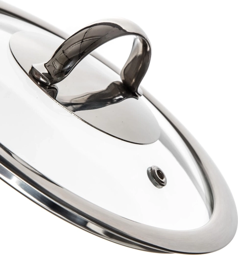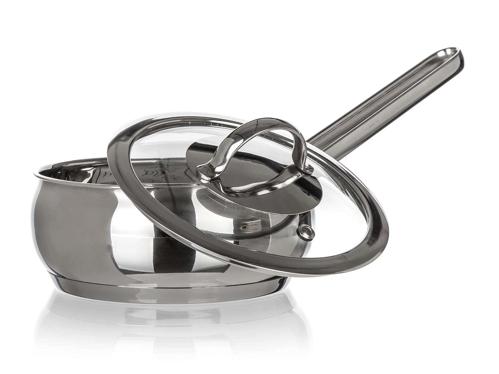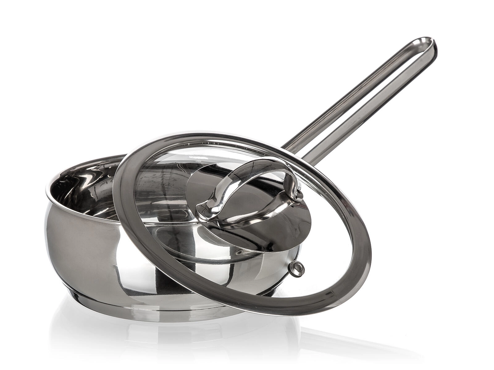 Pratico casseruolino in acciaio inox 18/8 di alta qualità con fondo piatto per stabilità e distribuzione uniforme del calore. Il coperchio in vetro con foro retinato per lo sfogo del vapore consente di controllare la cottura senza inutili perdite di calore e umidità.
