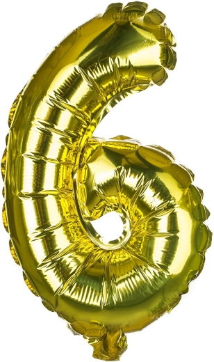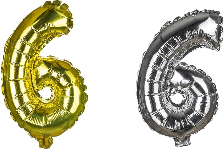 Elegante palloncino in foil a forma di numero 6, alto circa 30 cm, in un raffinato mix di colori oro e argento. Inclusi cannuccia di carta per un facile gonfiaggio e cordino per appenderlo. Ideale come decorazione per compleanni, anniversari e feste, gonfiabile ad aria.