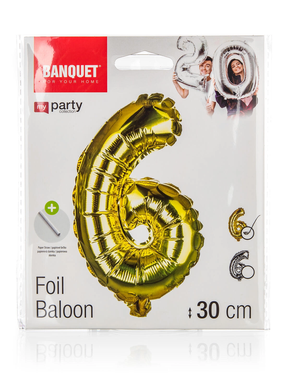 Dona alla tua festa brillantezza e stile. Il palloncino in foil numero 6 nei colori oro e argento è la scelta perfetta per compleanni, anniversari e eventi aziendali. Grazie agli accessori pratici lo prepari in pochi istanti, creando una decorazione party di grande impatto.