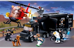 base mobile SWAT (camion), elicottero, moto della polizia, 5 minifigure, accessori per scene d’azione