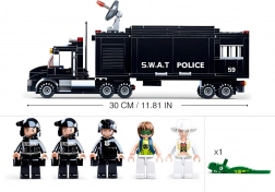 Il protagonista del set è il camion SWAT nero – una base mobile con dettagli realistici che funge da centrale per tutte le operazioni di polizia. Ideale per spostamenti tattici e pianificazione degli interventi.
