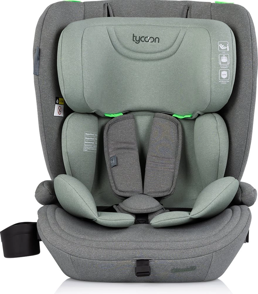 Il seggiolino auto per bambini Chipolino Tycoon i-Size per un'altezza di 76–150 cm garantisce viaggi sicuri e confortevoli da circa 15 mesi fino a 12 anni. Offre un cinturone a 5 punti con morbida imbottitura, poggiatesta regolabile, imbottiture confortevoli e un portabicchiere. Soddisfa il severo standard ECE R129 i-Size, inclusi i test di impatto laterale.