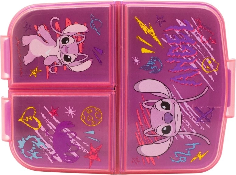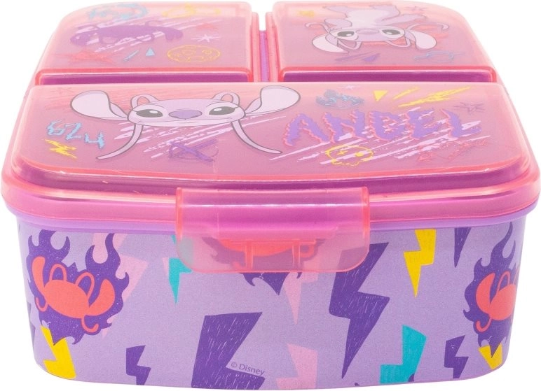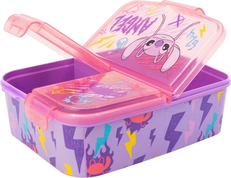Pratico lunch box multi scomparto con motivo Angel che offre 3 vani separati per una merenda perfettamente organizzata. Realizzato in plastica resistente senza BPA, ha una chiusura affidabile e grazie al design giocoso i bambini lo adoreranno per la scuola, le attività e le gite.