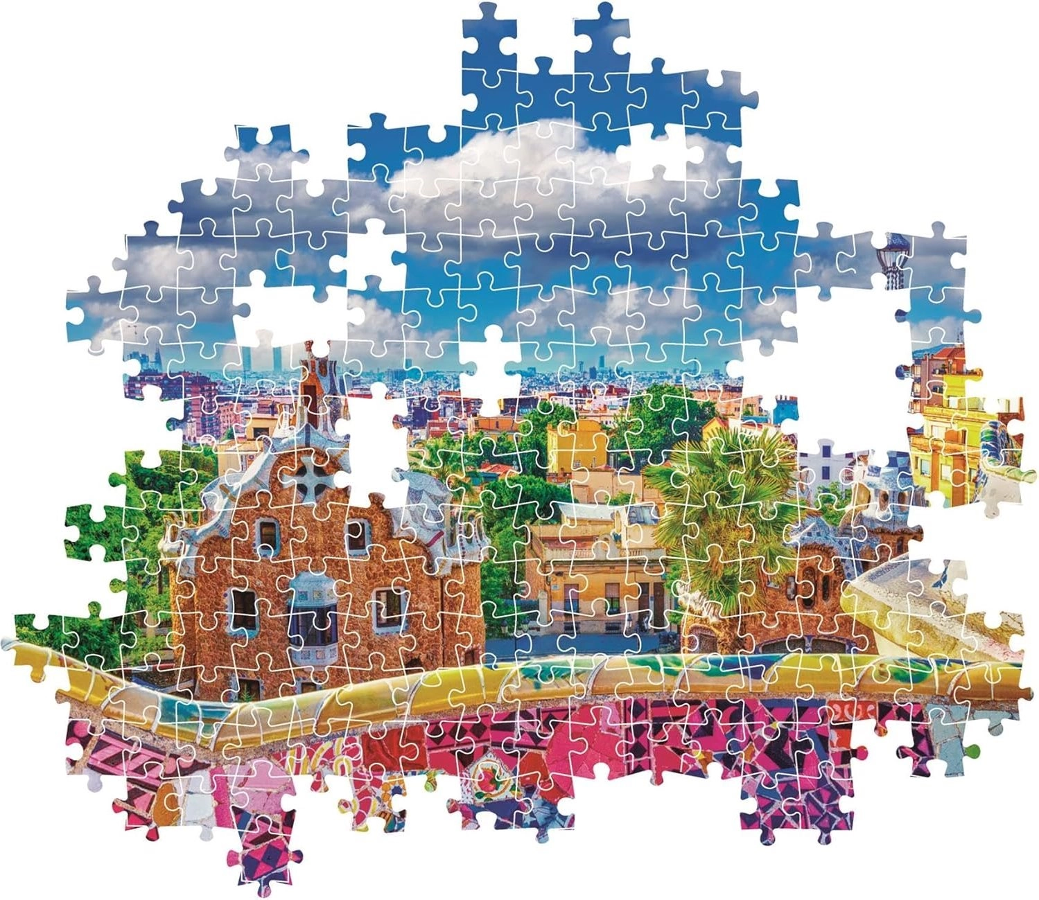 Scopri il fascino di Barcellona con i puzzle CLEMENTONI di alta qualità. Il set con il tema Park Güell offre 1000 pezzi, stampa precisa e colori intensi per un perfetto impatto visivo. Ideale per amanti dei viaggi e collezionisti di puzzle.