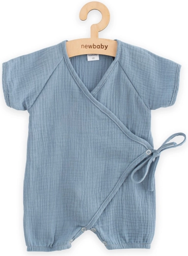 Tutina estiva leggera e traspirante in mussola con maniche corte del marchio New Baby. Modello avvolgente con laccetti sul fianco, pratici bottoncini a pressione tra le gambine per un facile cambio e delicati elastici al fondo gamba per un comfort ottimale. 100% cotone con certificazione OEKO-TEX STANDARD 100 per la sicurezza della pelle delicata dei bambini.