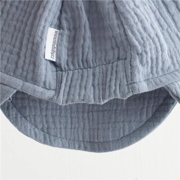 La visiera pratica crea una piacevole ombra e protegge occhi e viso dal sole intenso. La struttura della mussola non è solo gradevole al tatto, ma anche molto resistente: a ogni lavaggio il materiale diventa più morbido, pur mantenendo forma e funzionalità. Scelta eccellente per l’estate, per l’uso quotidiano in passeggino e al parco.