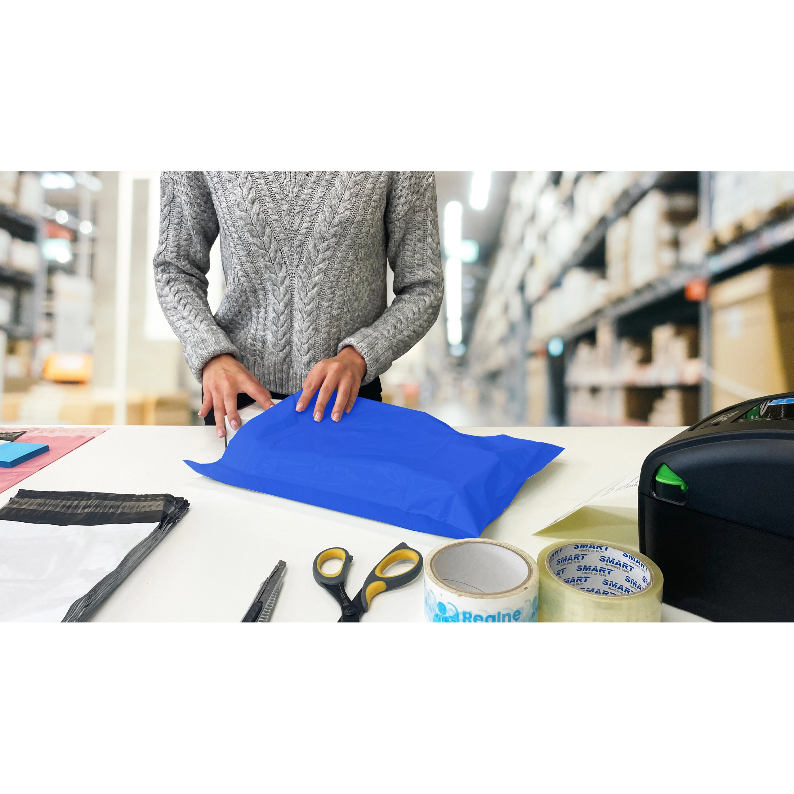 Cerchi un imballaggio affidabile per e‑commerce o ufficio? Queste buste poly mailer blu formato A3 combinano imballaggio rapido, chiusura sicura e peso ridotto per contenere i costi di spedizione. La striscia autoadesiva permette una chiusura immediata senza nastro e la plastica multistrato robusta protegge da strappi e umidità.