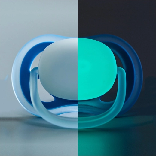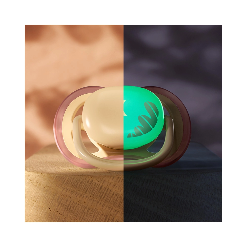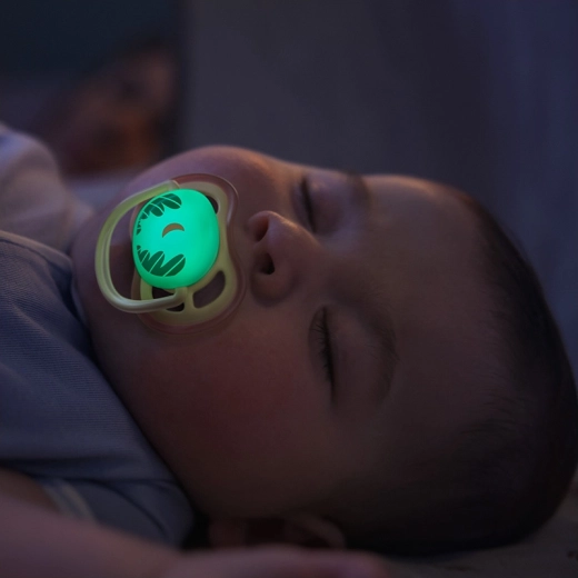 La variante notturna Ultra Air ha un centro che si illumina delicatamente, così trovi il ciuccio al buio senza svegliare il bambino accendendo la luce.