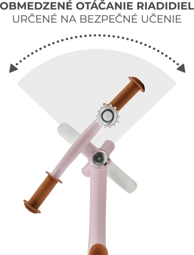 L’angolo di sterzata limitato evita la brusca rotazione del manubrio. La sella ergonomica imbottita con regolazione 33–42 cm cresce con il tuo bambino.