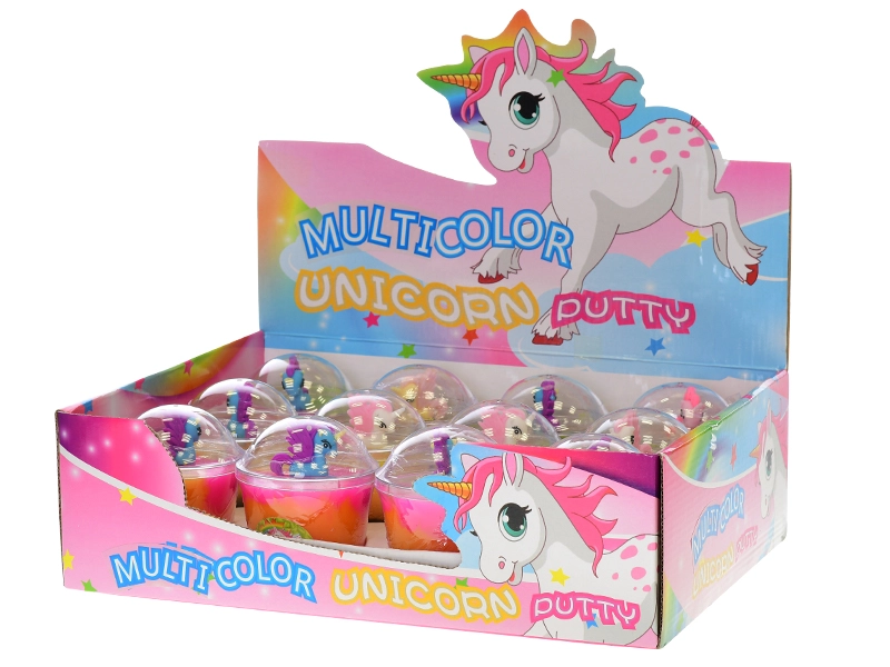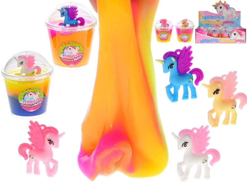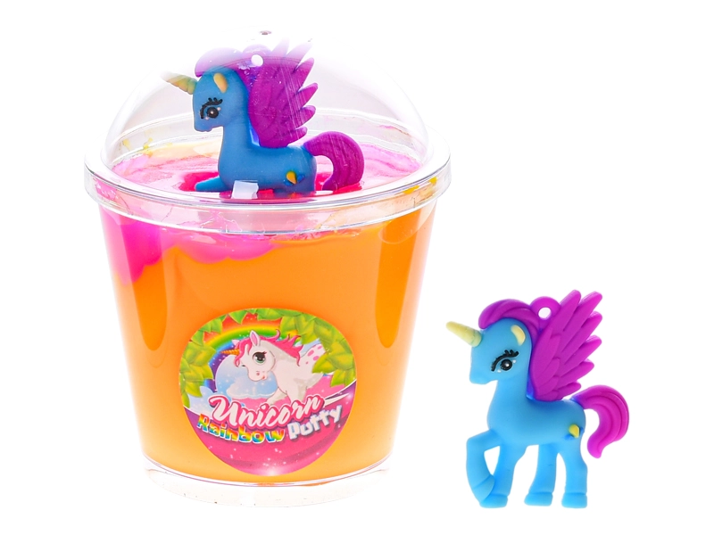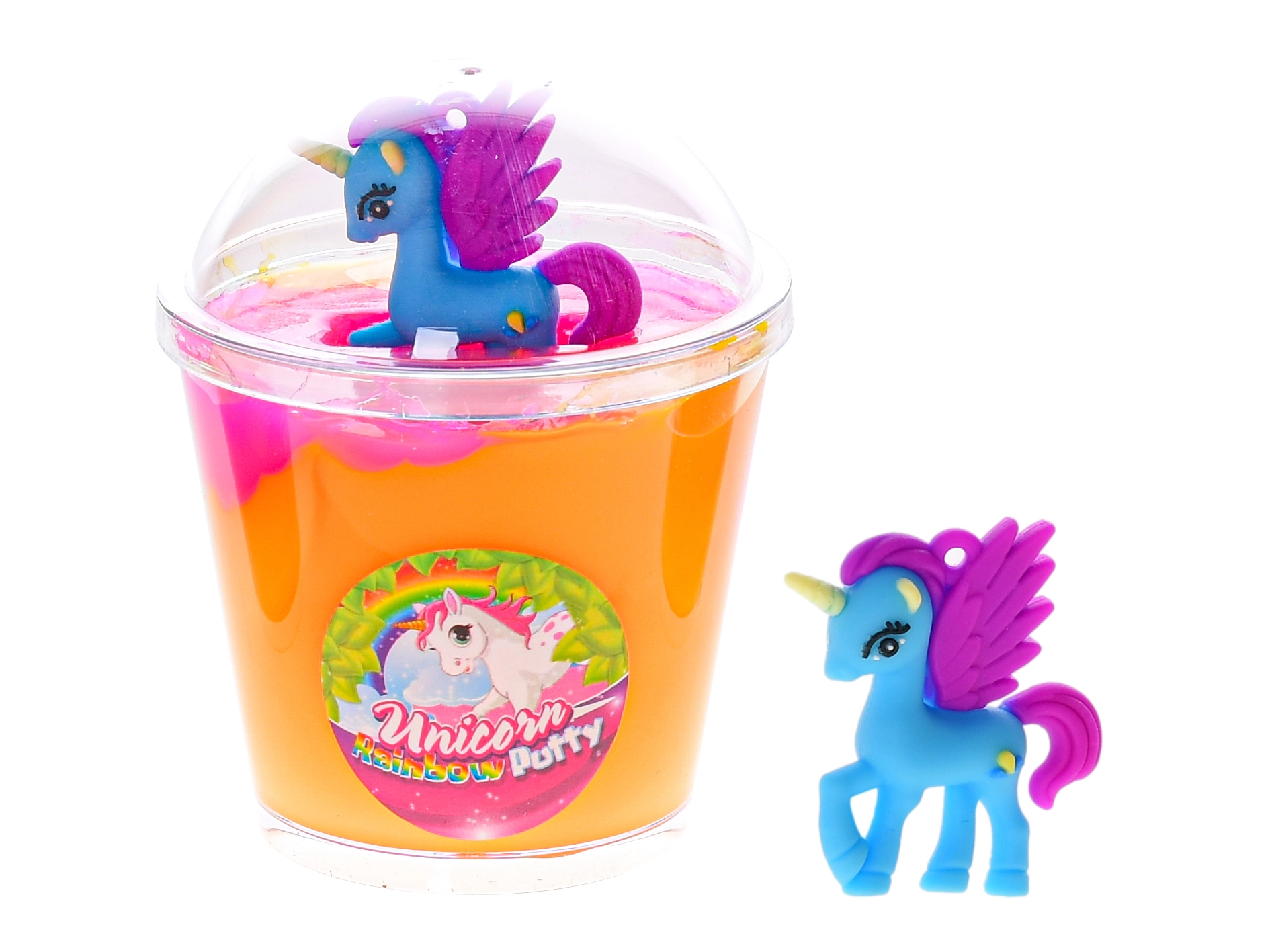 Scopri il colorato mondo della fantasia con lo slime unicorno arcobaleno in un pratico vasetto. I bambini adoreranno la sua consistenza elastica e i colori scenografici che stimolano la creatività e la percezione sensoriale.
