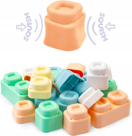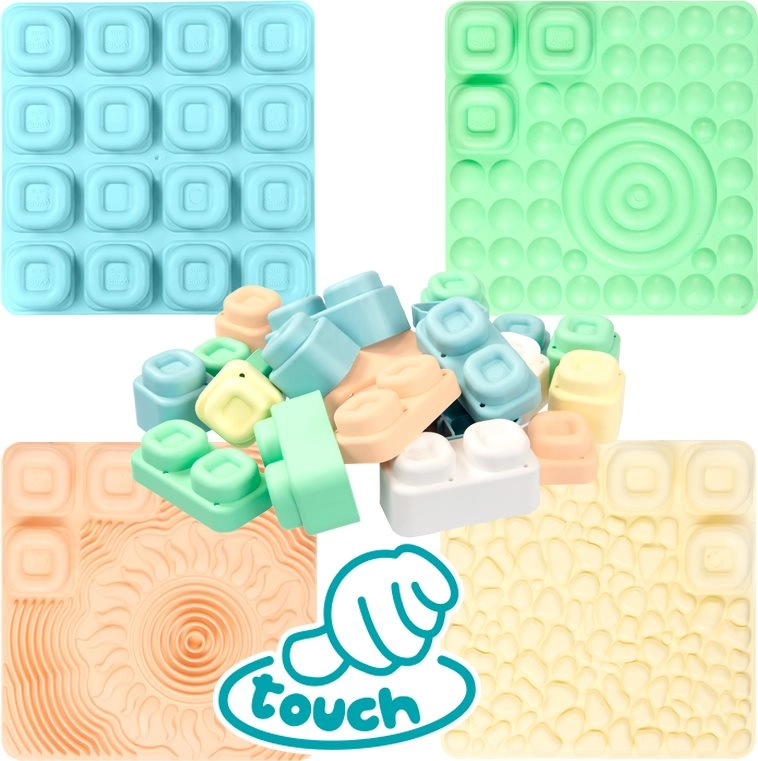 Il set MOCHTOYS Play & Squish offre un ambiente sicuro e stimolante per esplorare texture, forme e colori. Ogni tappetino ha una struttura diversa che favorisce la percezione tattile, mentre i cubi morbidi ed elastici sono facili da afferrare anche per le manine più piccole e invitano alla costruzione, alla classificazione e al gioco libero.