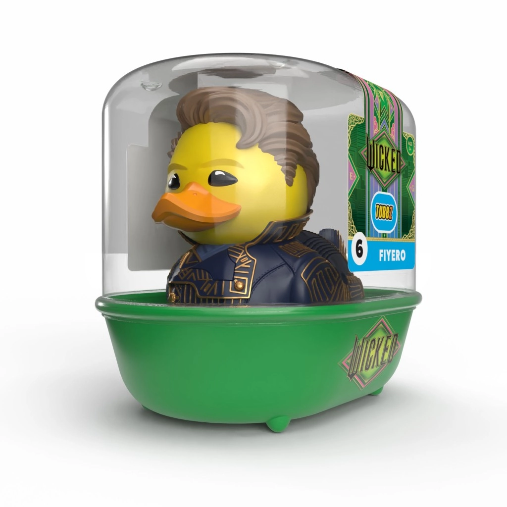 Questa elegante paperella da collezione TUBBZ rende omaggio al fenomeno teatrale WICKED e al personaggio del Principe Fiyero. La figura è arricchita da dettagli accuratamente modellati, colori fedeli e una finitura opaca che mette in risalto gli elementi dorati e scuri del costume. Ogni pezzo appartiene alla prima edizione limitata ed è numerato, aumentando l’attrattiva per fan e collezionisti.