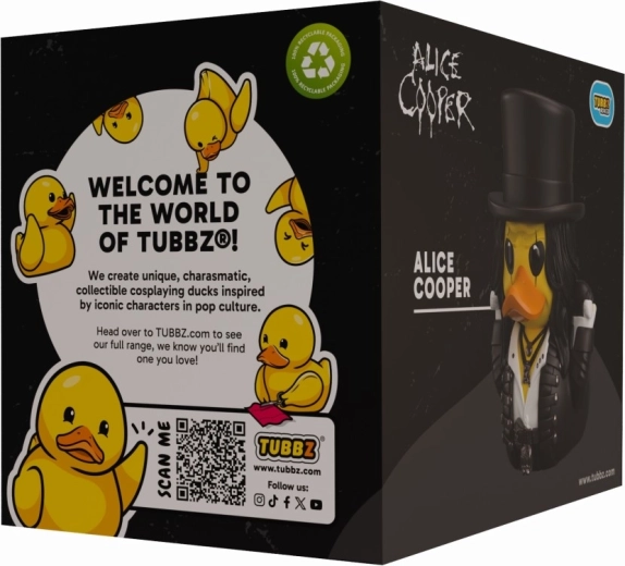 Scopri l’originale statuetta da collezione Tubbz a forma di classica paperella di gomma, che riproduce fedelmente la personalità di ALICE COOPER – dal trucco vistoso agli elementi dark dell’outfit rock. Il vinile resistente garantisce lunga durata e dettagli precisi che conquisteranno ogni fan.