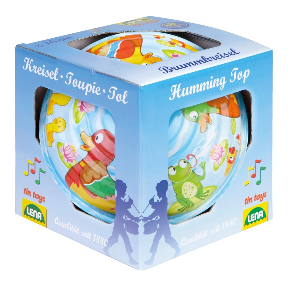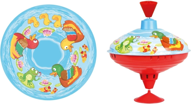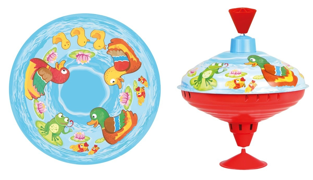 Un classico giocattolo per bambini che non passa mai di moda: trottola con motivo di piccole paperelle dal diametro di 16 cm, che farà felice ogni bambino. Facile da far girare, divertimento per lunghi momenti e sviluppo di motricità e coordinazione.